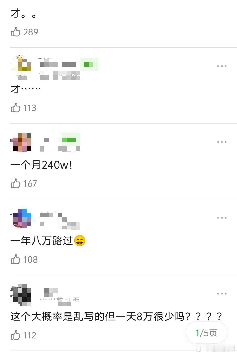 小徒弟 43 2024-08-26 12:33 一天8万,一般除了一线明星,这种小明星一年能有2个月拍戏就谢天谢地了。大部分时间都在是试角奔跑的 用户58xxx08 回复 08-26 13:51 你知道有多少人一年连8万都没有吗? 五点五十九起 回复 08-26 12:56 就是这样拍一个月可能比你十年挣得都多吧