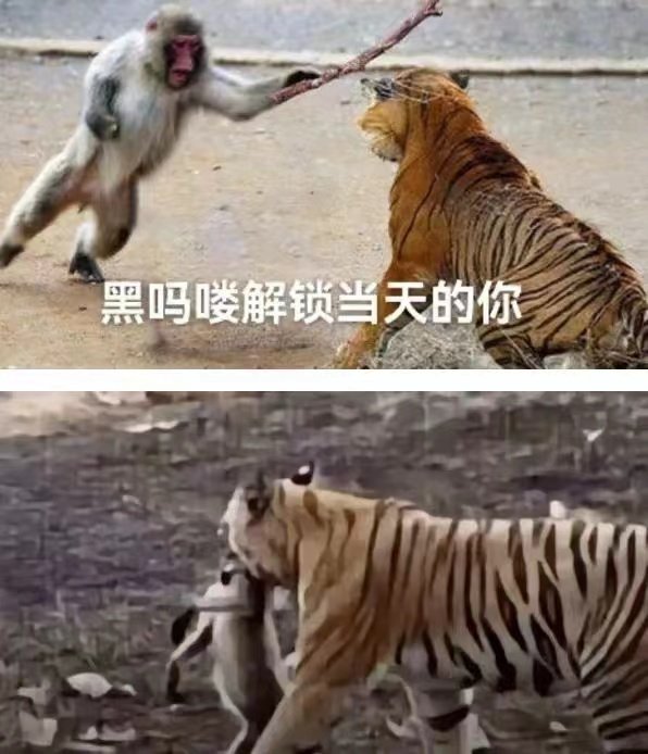 #点个猴头菇笑做孙大圣# 那群由此开始前叫嚣着当大圣的人都成了虎先锋的便当,不