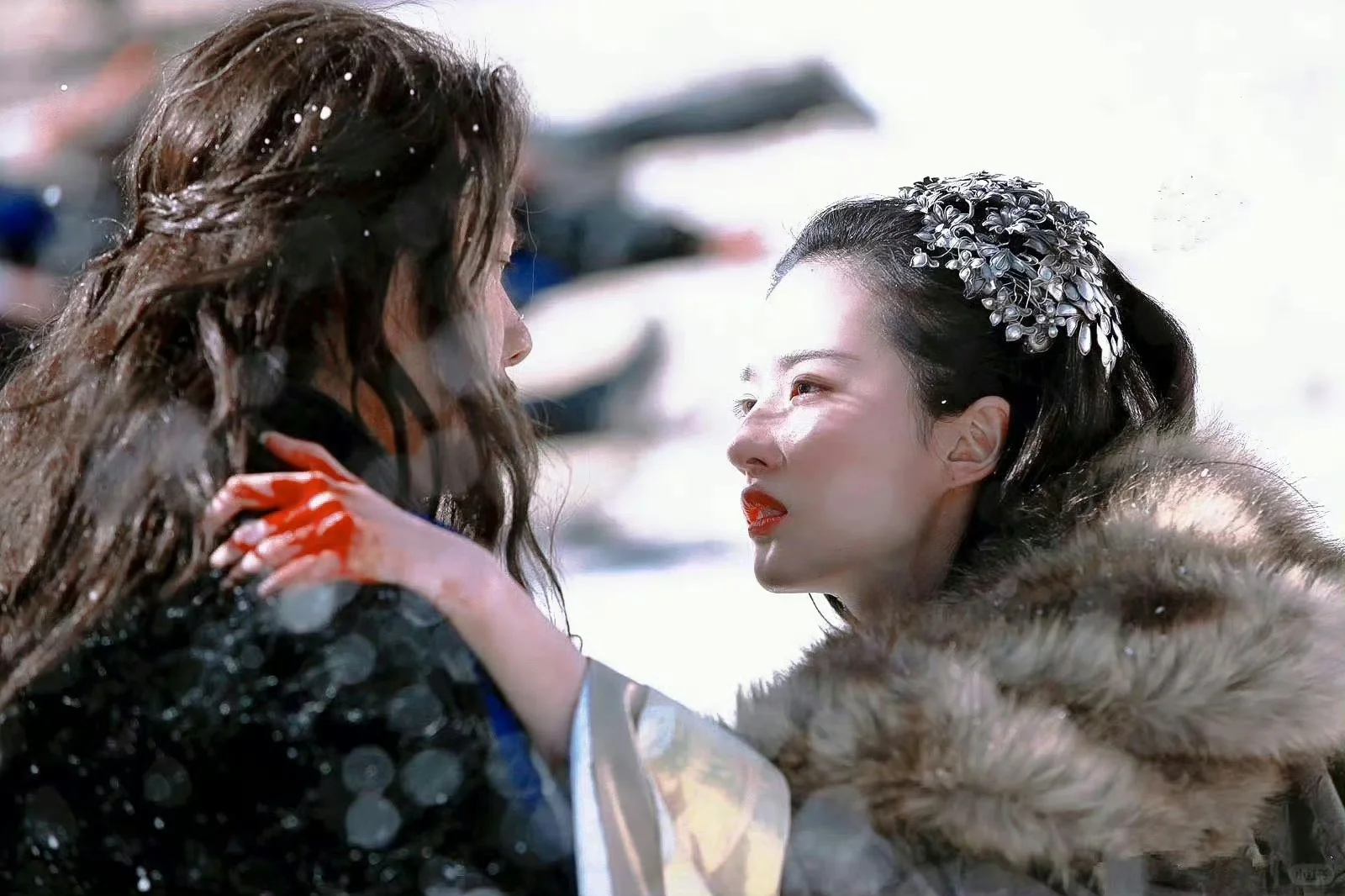 刘亦菲 鸿门宴传奇 虞姬的三套头饰实在太特别了,到这么多年还是忘不掉,看起来简单但是又特殊,看着像竹藤编织成穗的头饰,还有制成小花的银饰,带着一股高贵和厚重感,看着优雅又别致,清冷又带着破碎感