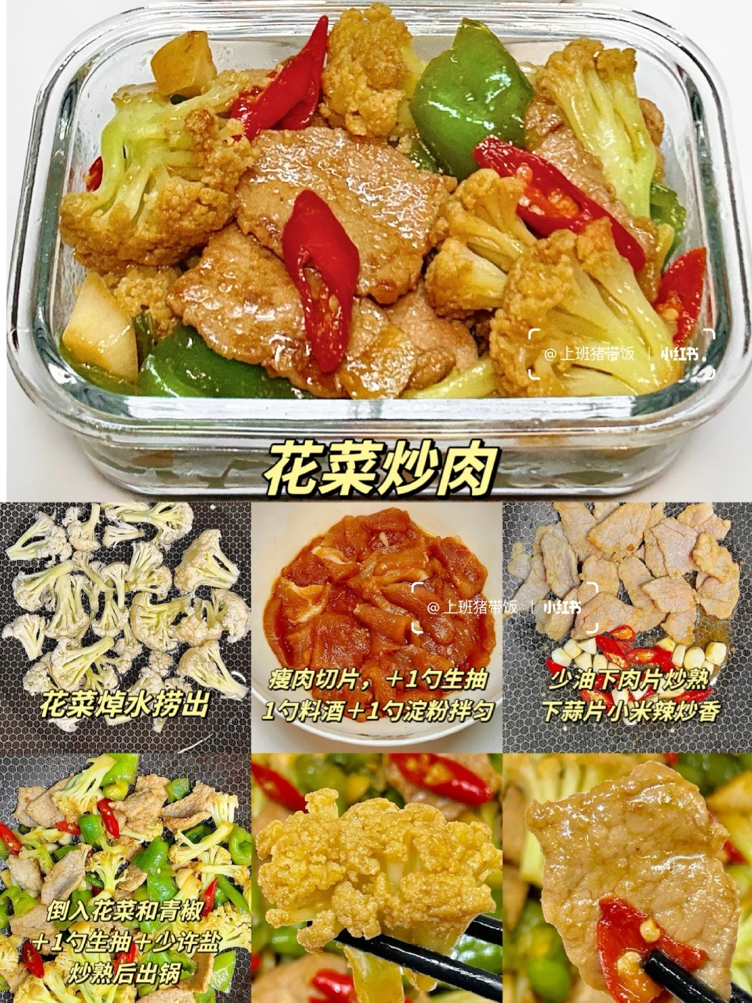一周合集又来了,今天整理的是6道十分钟快手菜 肉类提前切好腌好,蔬菜提前洗净切好 少油锅热下肉类翻炒,再放进蔬菜,炒熟就出锅 不用十分钟,一道好吃又减脂的午餐就做好了~ ﹣ 1⃣西兰花香菇炒虾仁 2⃣口蘑鸡胸肉 3⃣火腿炒花菜 4⃣莴笋木耳炒肉片 5⃣丝瓜炒鸡腿肉 6⃣花菜炒肉 ﹣ 姐妹们还有什么好吃又快手的菜推荐给我,好吃我就给你们出教程~ 主页还有更多的减脂餐,想自己带饭的姐妹收藏学起来吧!
