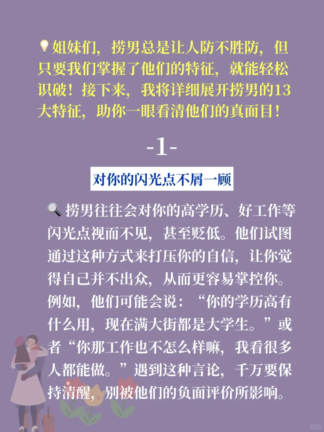 💡姐妹们,捞男总是让人防不胜防,但只要我们掌握了他们的特征,就能轻松识破!接下来,我将详细展开捞男的13大特征,助你一眼看清他们的真面目!