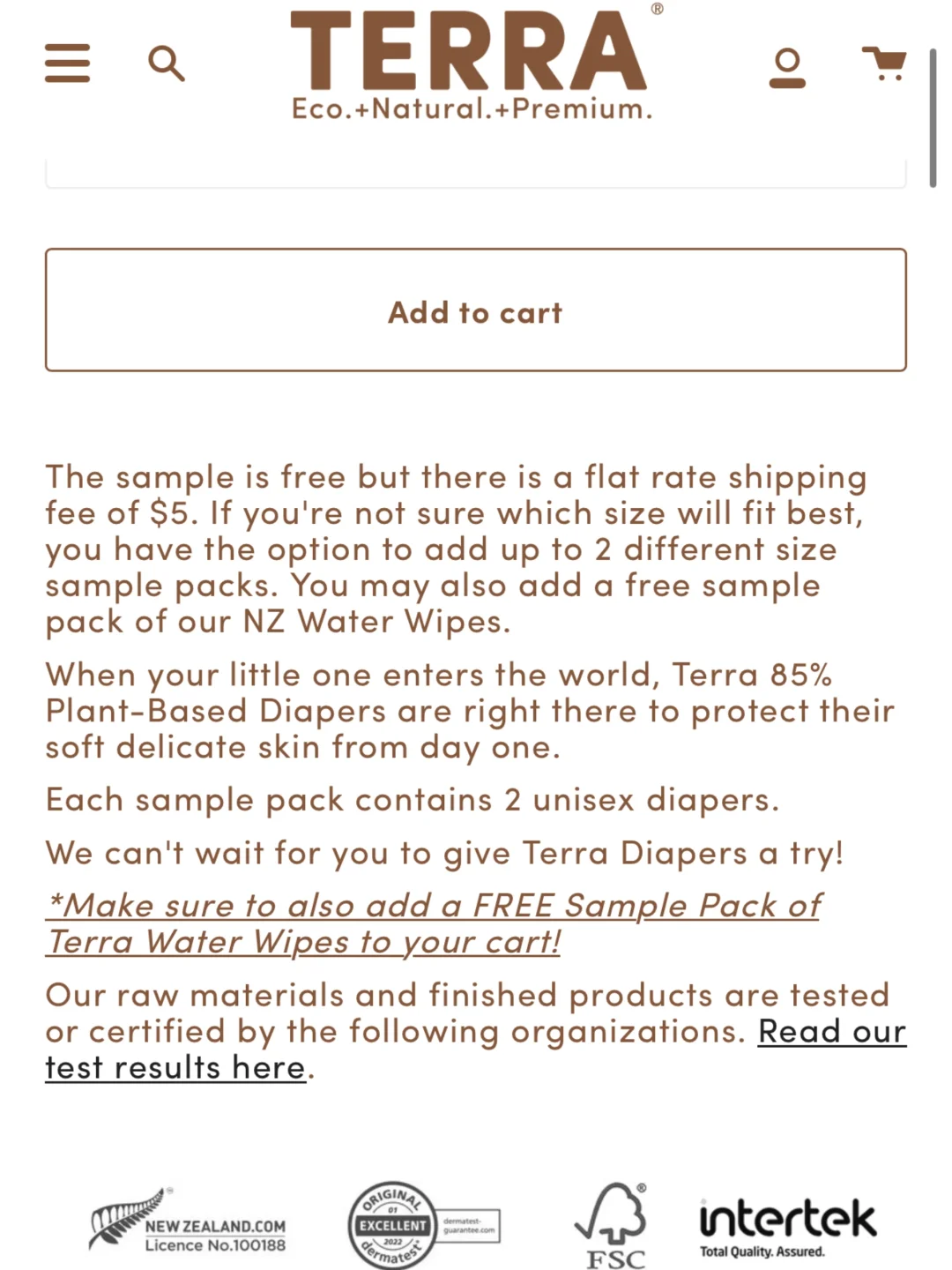 新西兰非常出名的母婴品牌Terra,现在纸尿片和湿纸巾都有免费🆓领取体验的活动~ 样品是免费的,但有一个运费。纸尿裤如果不确定哪种尺寸最适合,可以选择添加最多2个不同尺寸的样品包,每个样品包包含2片尿布。可以同时选择添加纸尿片和湿纸巾[赞R][赞R] 关注我,下一篇更精彩