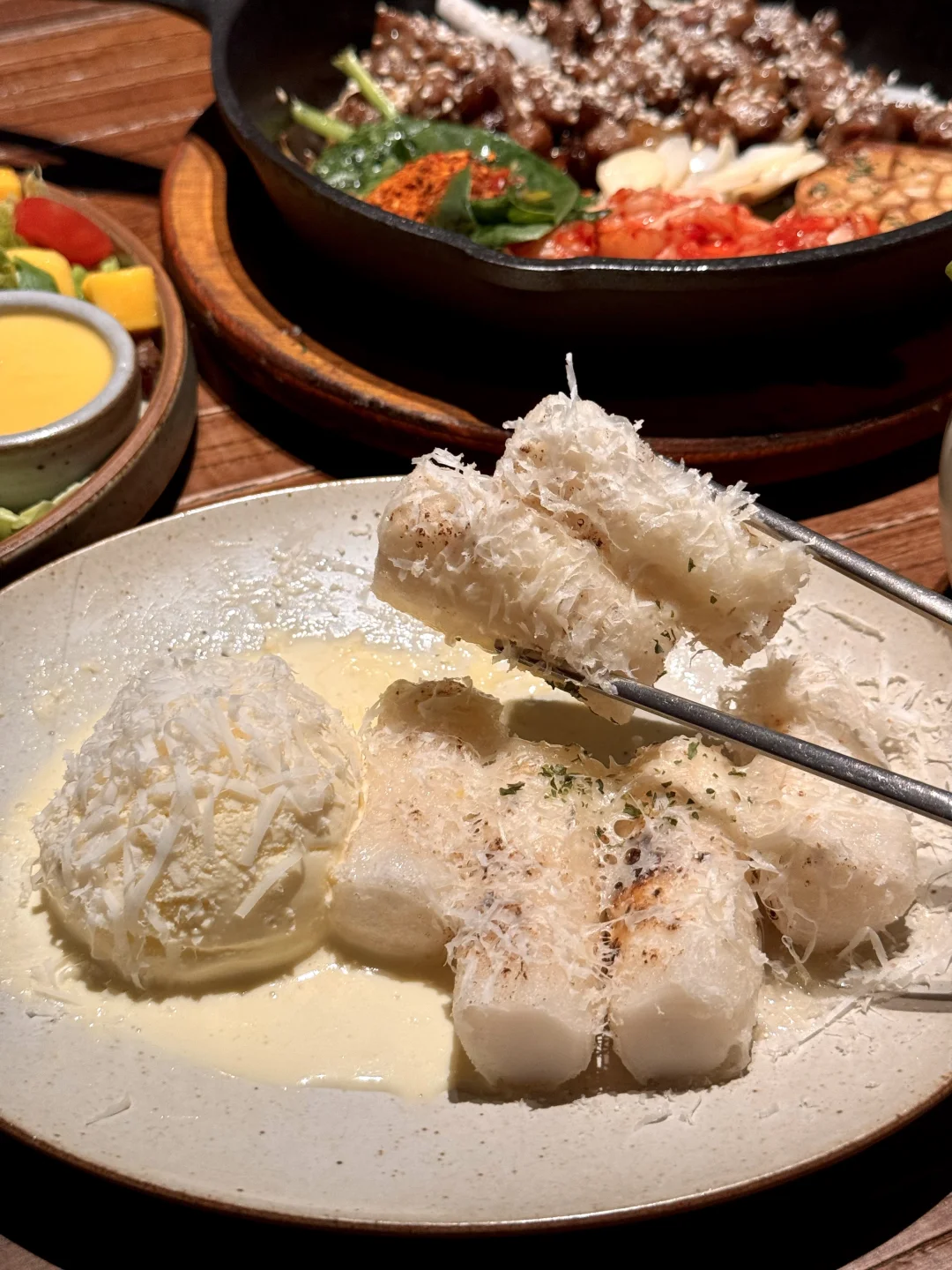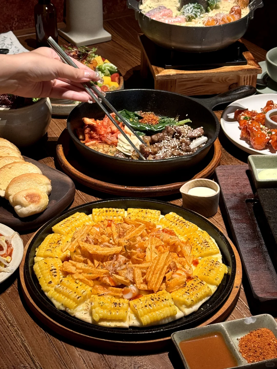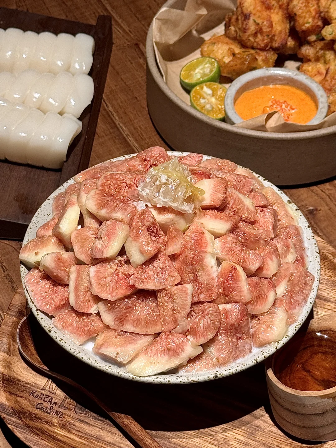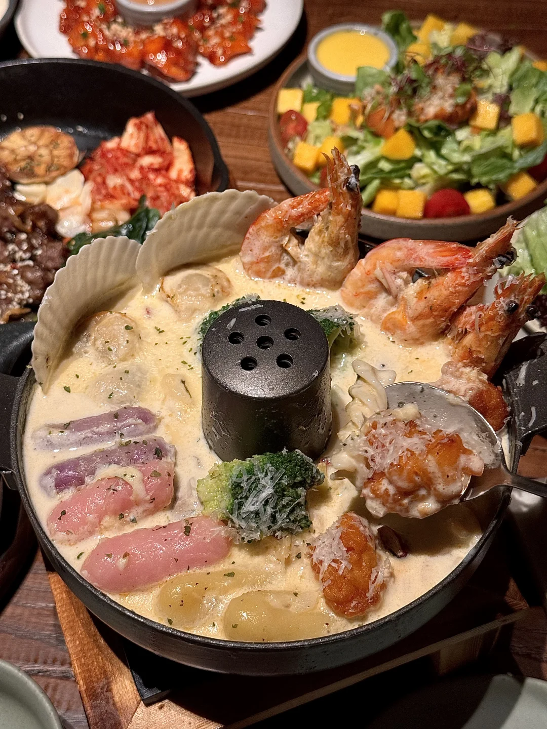 二刷了!尊嘟吼吼次啊!!无花果雪冰…🌽大虾披萨…备长炭直火烤肥牛🥩都好爱!!还吃到了海鲜奶油火锅🥹!!奶呼呼的!