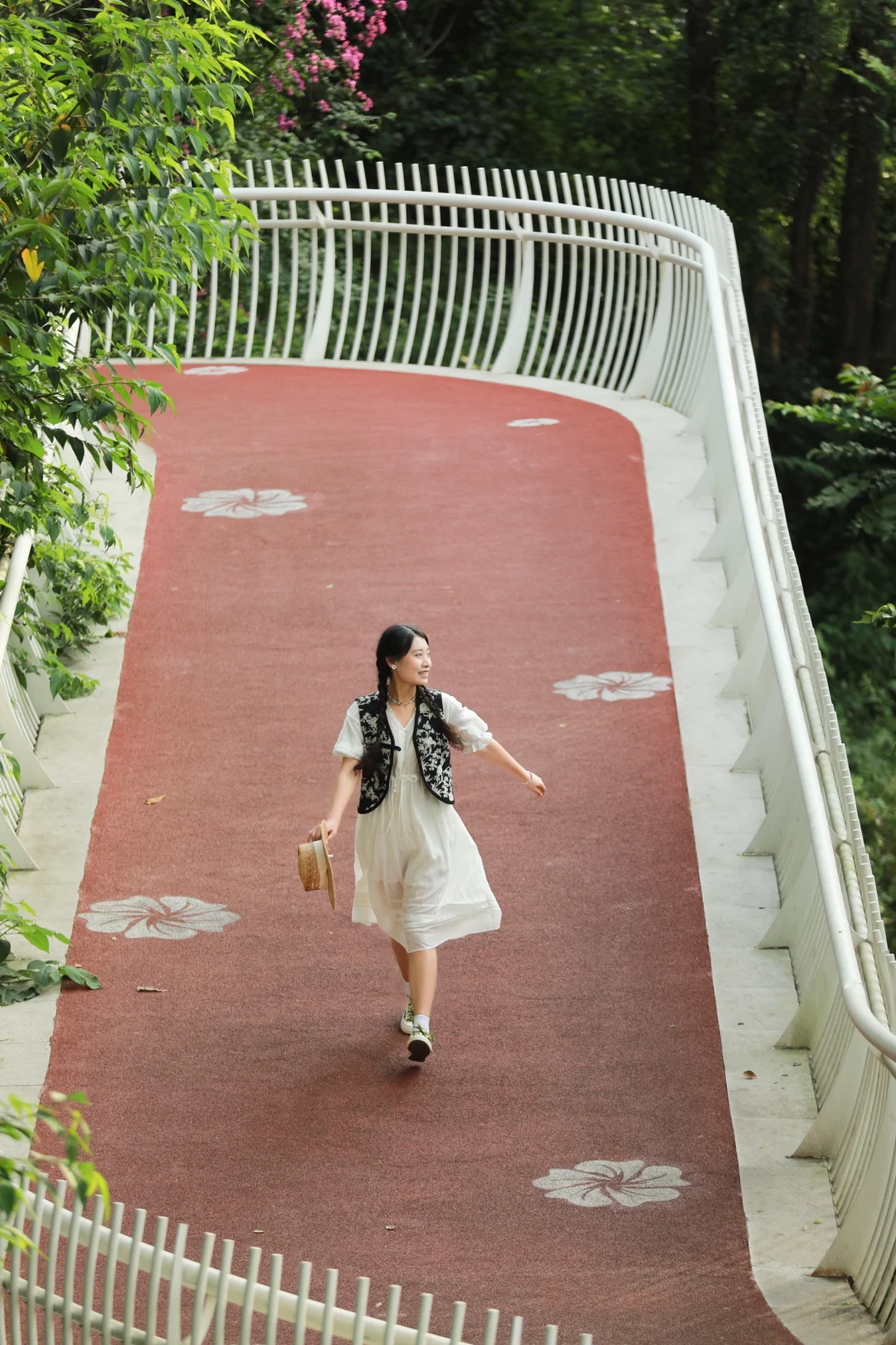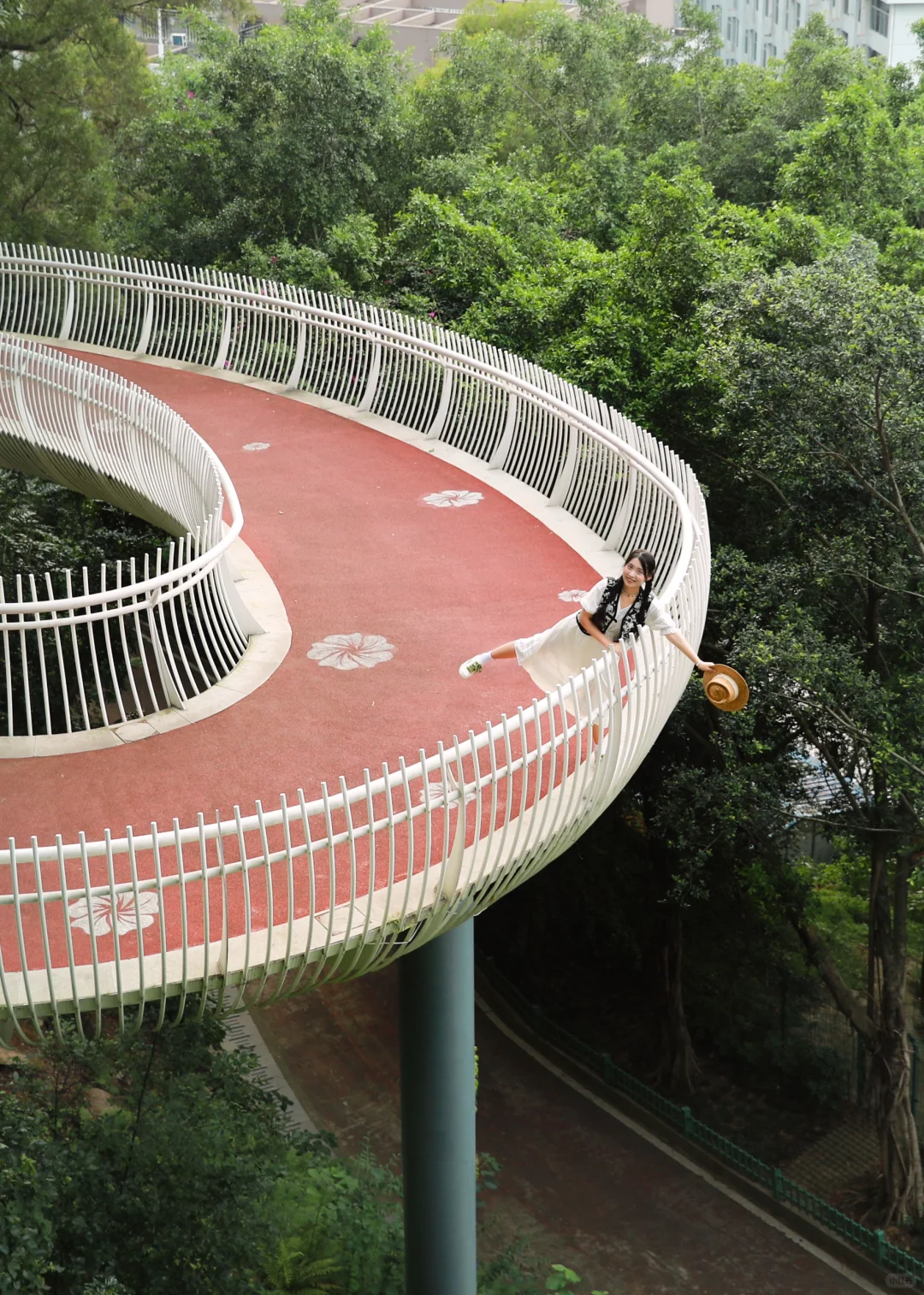 来福州旅游不要只去三坊七巷和烟台山了! 预留半天时间给福州城市又一名片——福道,真的很city ! 福道,被国家地理评为全球蕞美步行道,有多个入口,其中开满茉莉花的这段是我觉得蕞美蕞适合拍照的。 位置导航“建总•康桥里”,从电梯上来直达5楼就可以找到福道入口了。