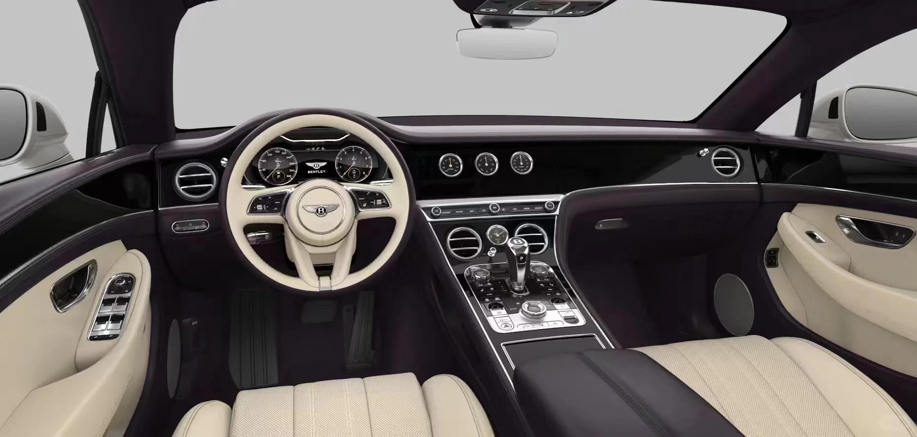 24款宾利欧陆V8冰川白/亚麻白拼深李紫