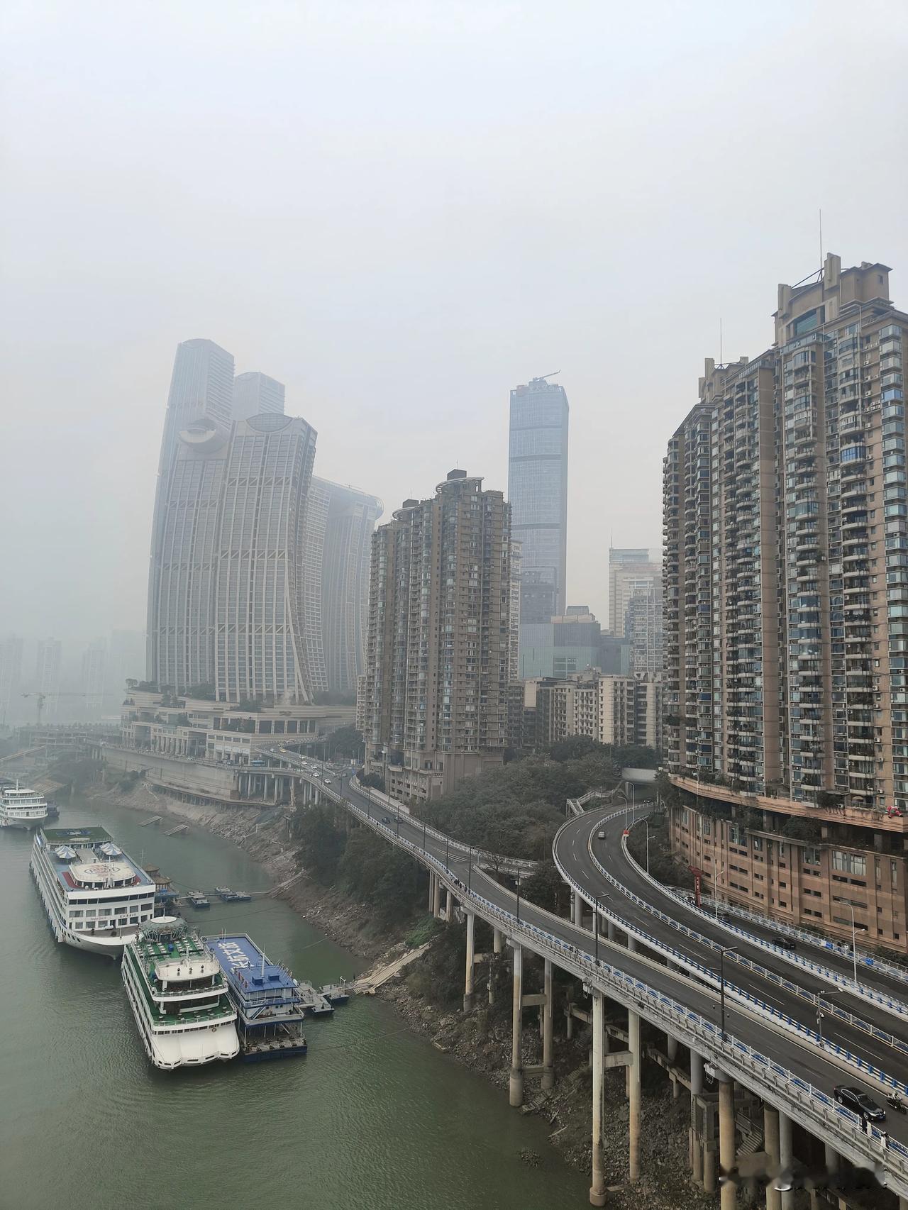 #重庆:迎新灯饰点亮 营造节日氛围#千厮门大桥白天虽然平平无奇,但夜晚的灯光却十