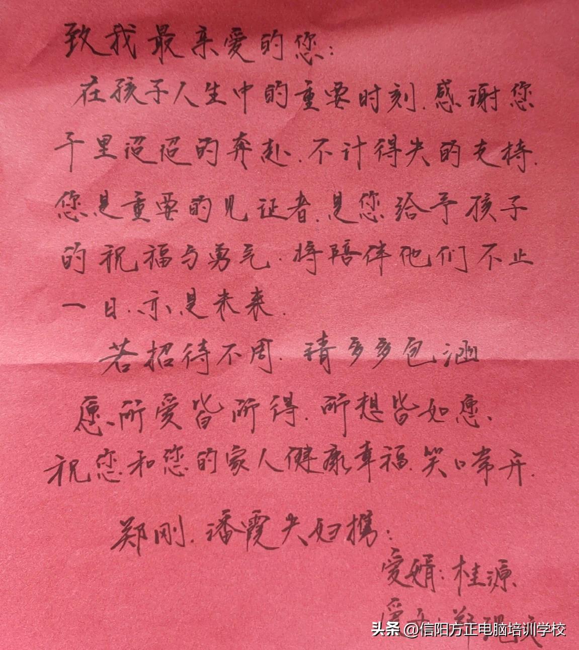 #信阳方正电脑学校#参加息县威尼斯酒店郑总女儿婚礼,来了一大波网络大咖,其中关店或周边息县籍的有荣誉新世界的刘总,牛厂长,滑不倒、牛大帅、牛哥等,还有新县籍的徐总、黄总,还有东莞的碧哥、中山的黄主任等等,郑总一家人很用心的在酒店里放了一只🌹、水果、瓜子、饮料,特别特别用心的为每一个房间留下了一封信!#信阳方正电脑会计学校#