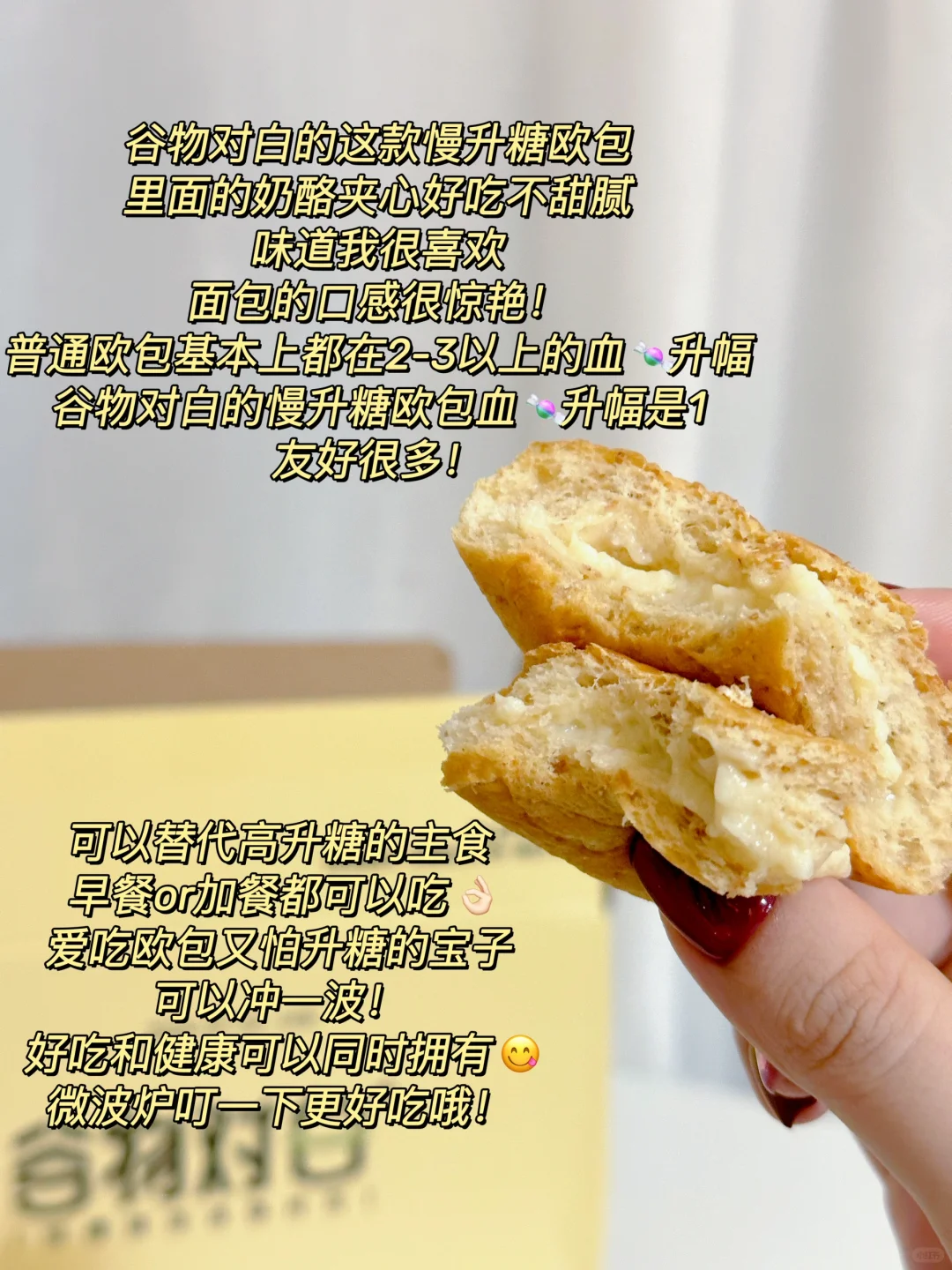 普通欧包基本上都在2-3的血🍬升幅,谷物对白的慢升糖欧包血🍬升幅是1,友好很多!可以替代高升糖的主食,早餐or加餐都可以吃👌🏻