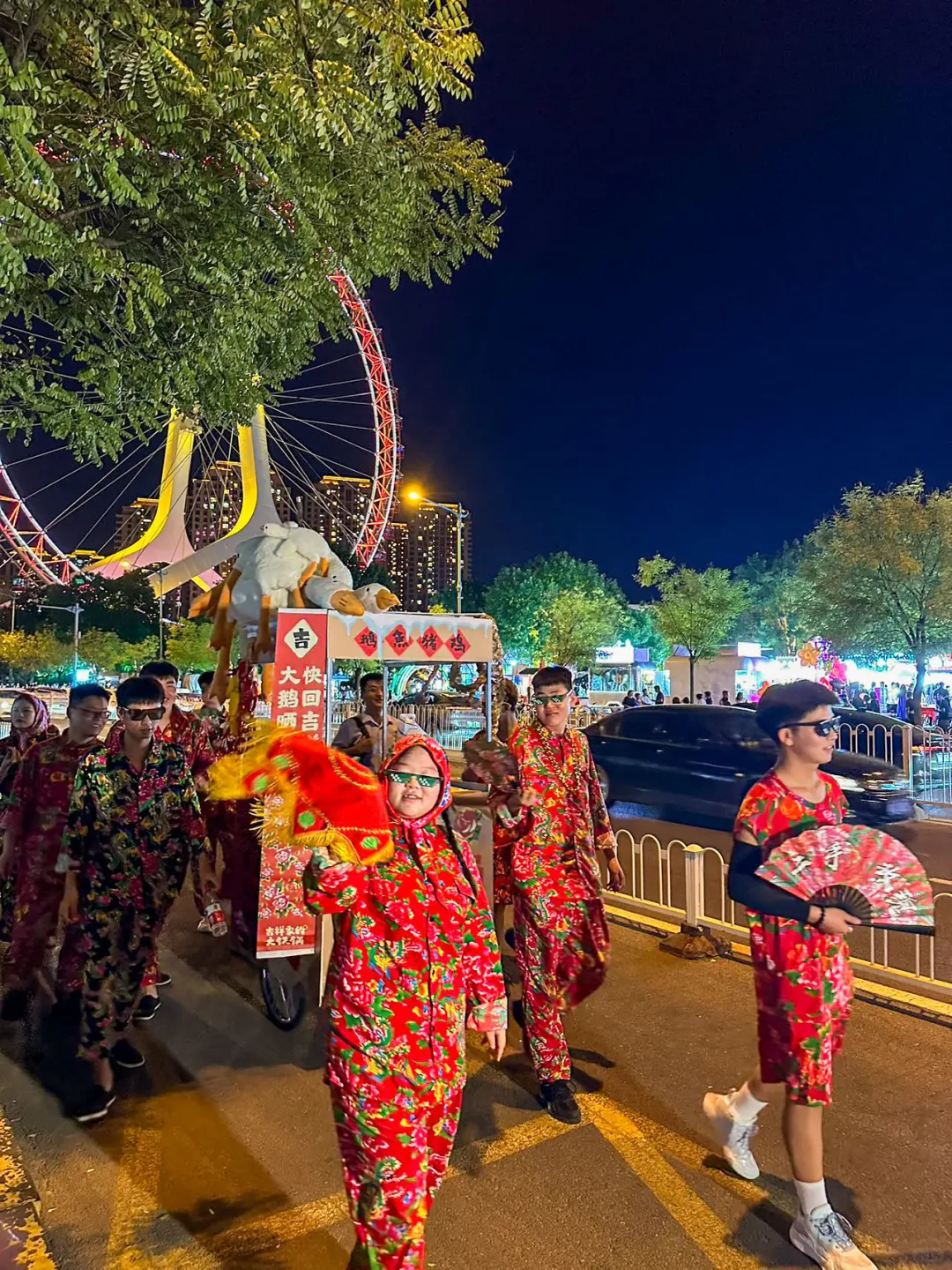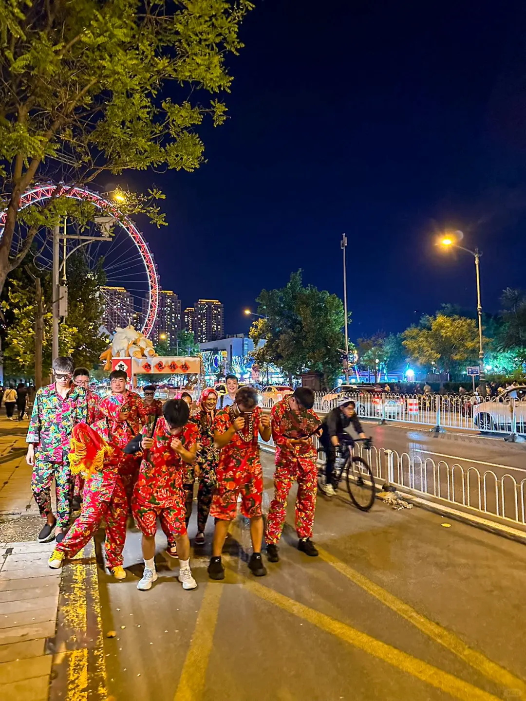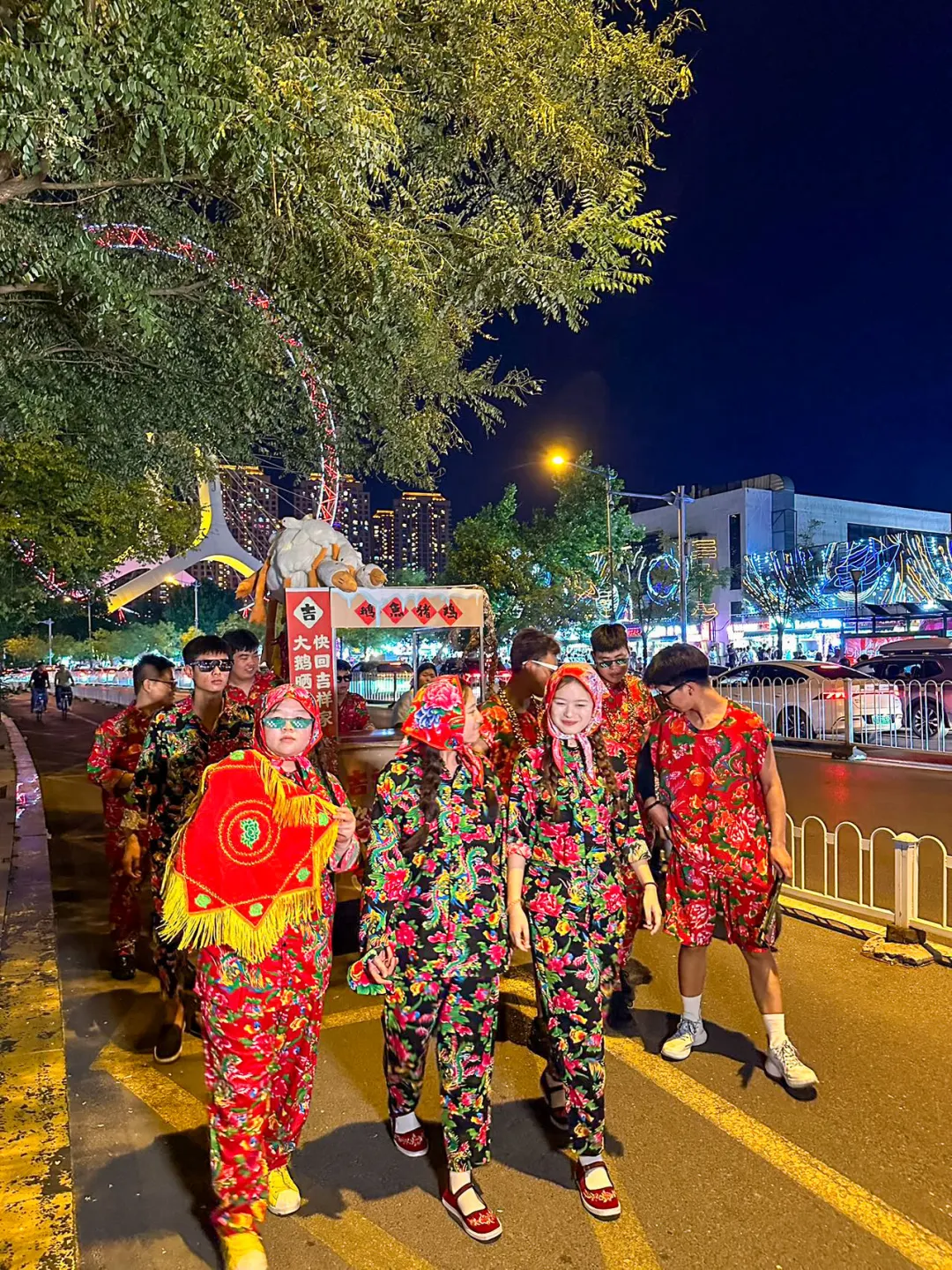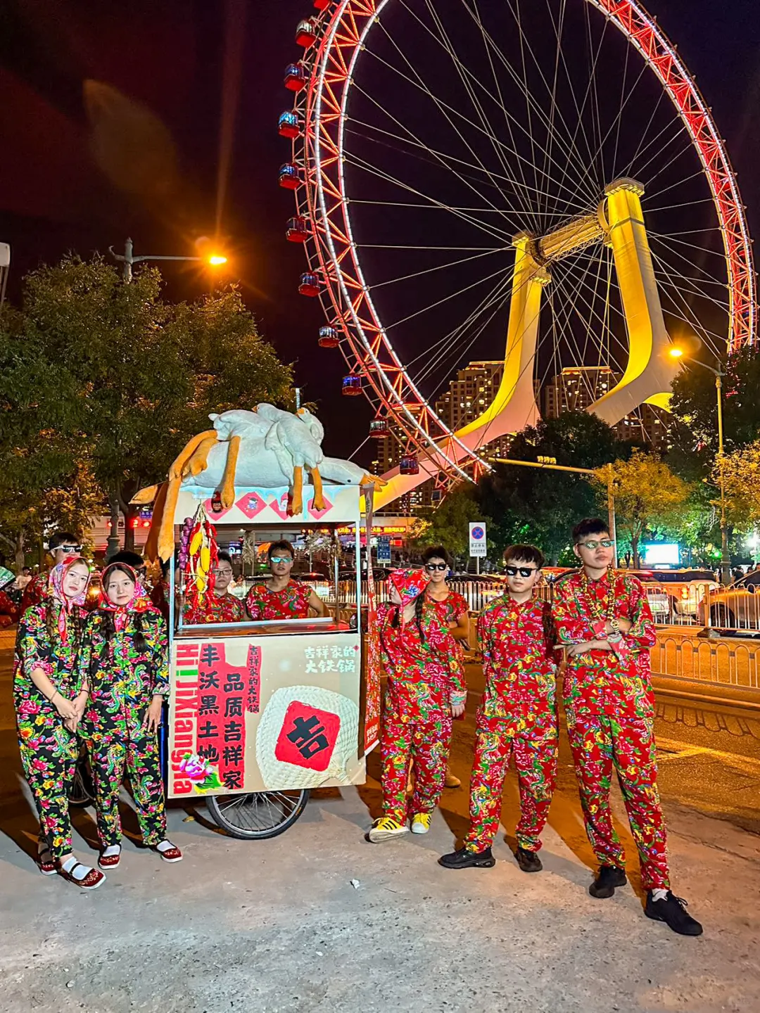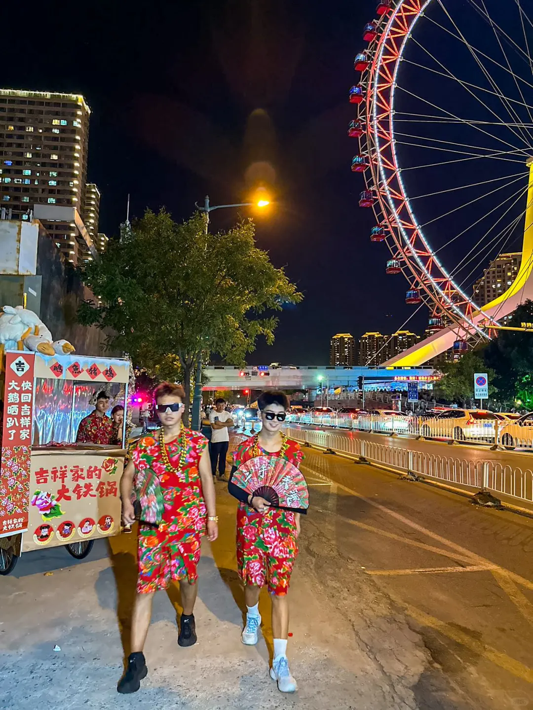 哎嘛,天津又玩出新花样啦! 东北大花🌺跑天津大街上来了! 带着🍑姐去天津之眼🎡,竟然在路边看到了倒骑驴! 🍑姐喜欢得不得了,走进一看是地推!
