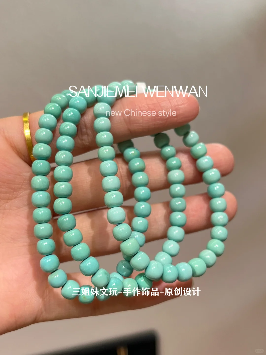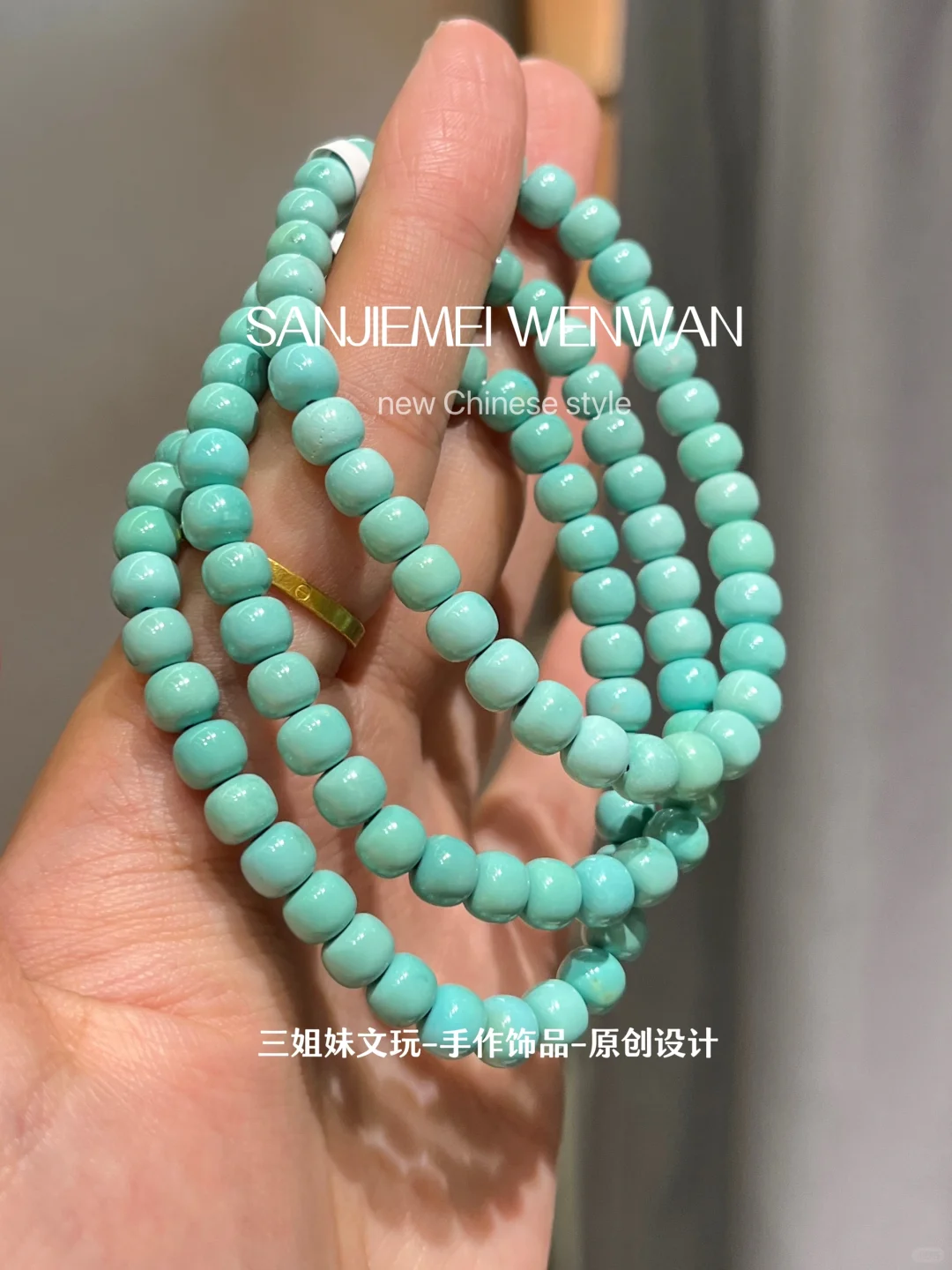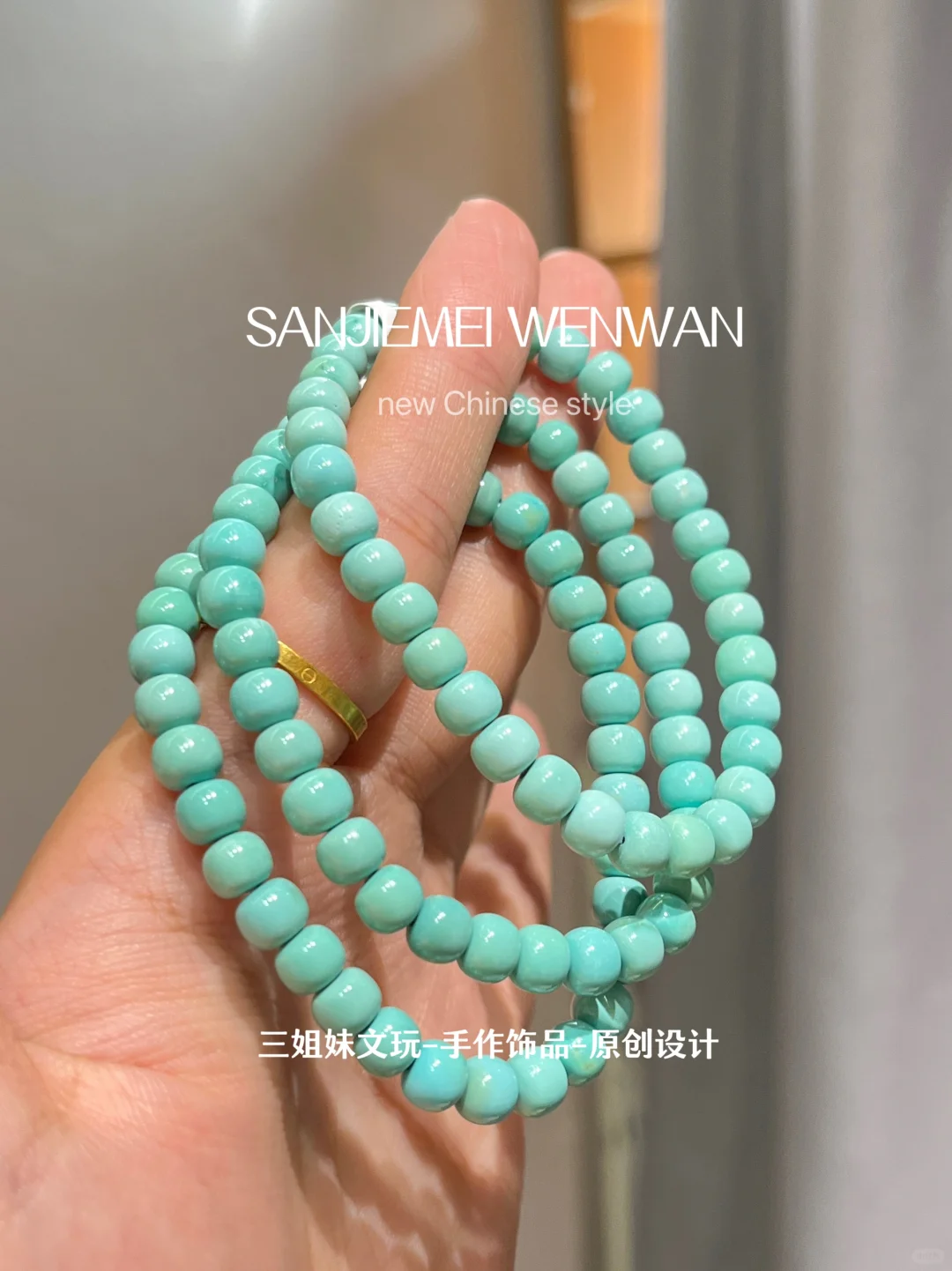 浅绿色的松石,少女心爆棚~ 后期走色可是帝王绿的颜色哦 前后强烈反差,适合体验盘玩感的姐妹