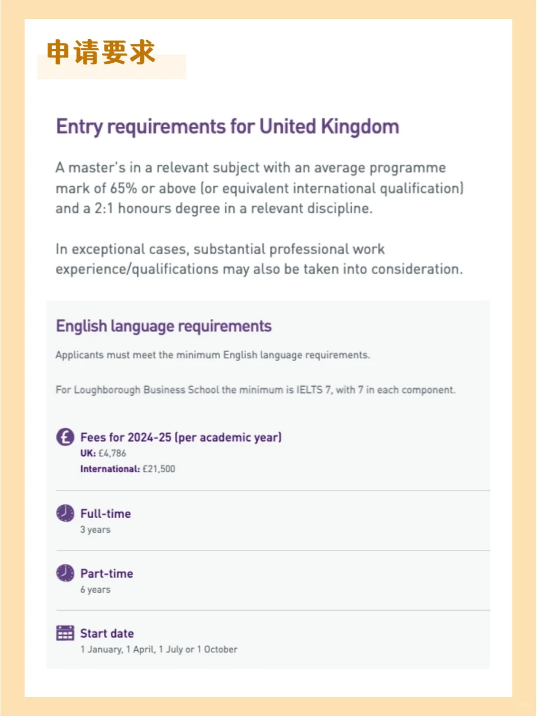相关学科硕士学位,平均课程分数达到65%或以上(或同等国际资格),并在相关学科获得2:1荣誉学位。