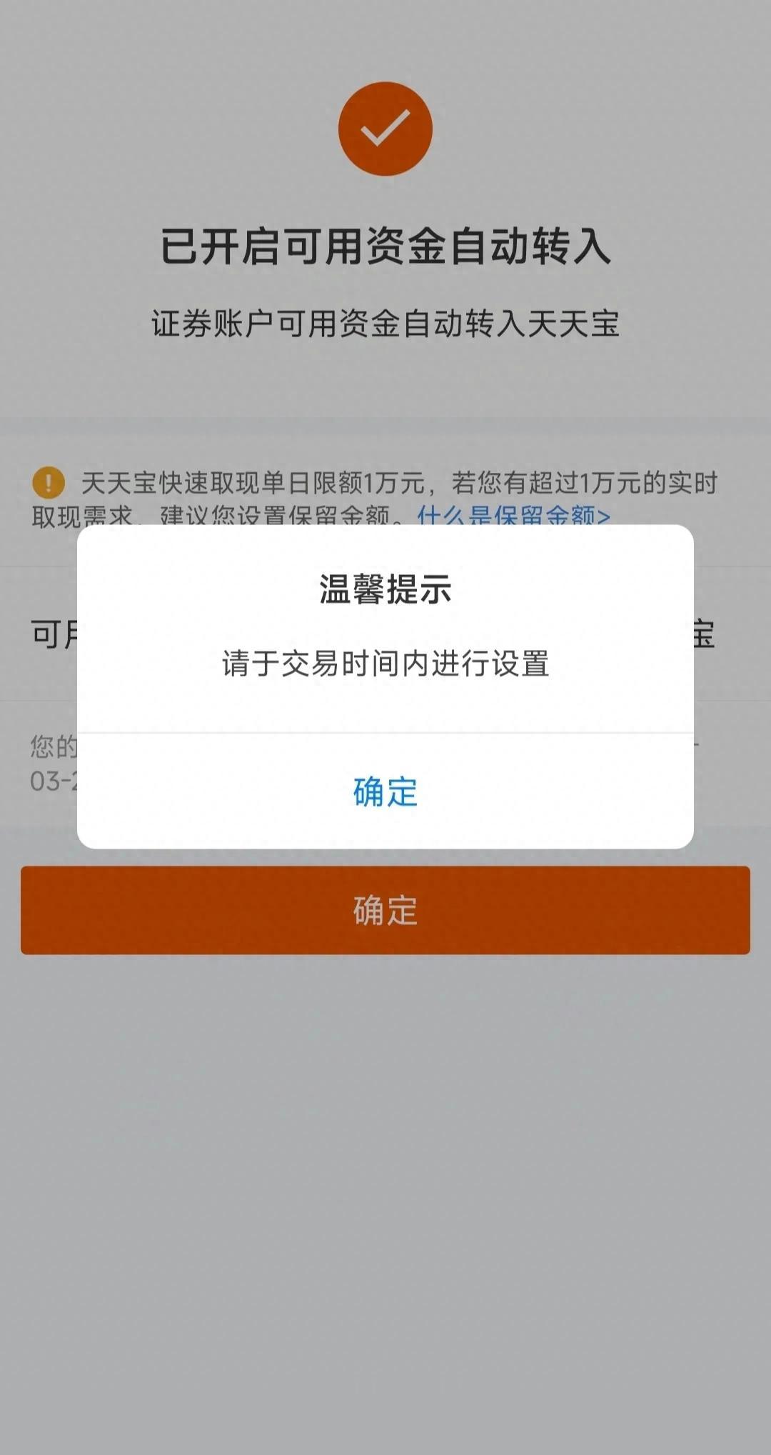 很多券商的自动理财(如中山证券现金通、中信证券信金保)的自动赎回(用于交易)虽然方便,但如果你想把钱转出银行卡,**必须要在交易日的特定时段(通常是9:00-16:00)进行操作**。如果你在晚上或者周末点击转出,系统只会冷冰冰地提示“不在交易时间内”,而你的钱依然躺在理财份额里睡大觉。