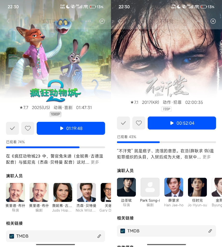 除了生活视频之外,我们珍藏的电影大片上传至绿联DH4300 Plus以后,内置TMDB以及智能识别双刮削引擎自动匹配,生成海报、演员、剧情、评分等元数据,瞬间就整理出一个漂亮的影视墙,看着就特别专业。