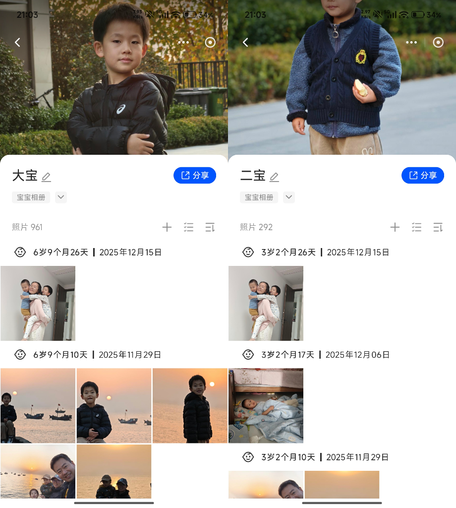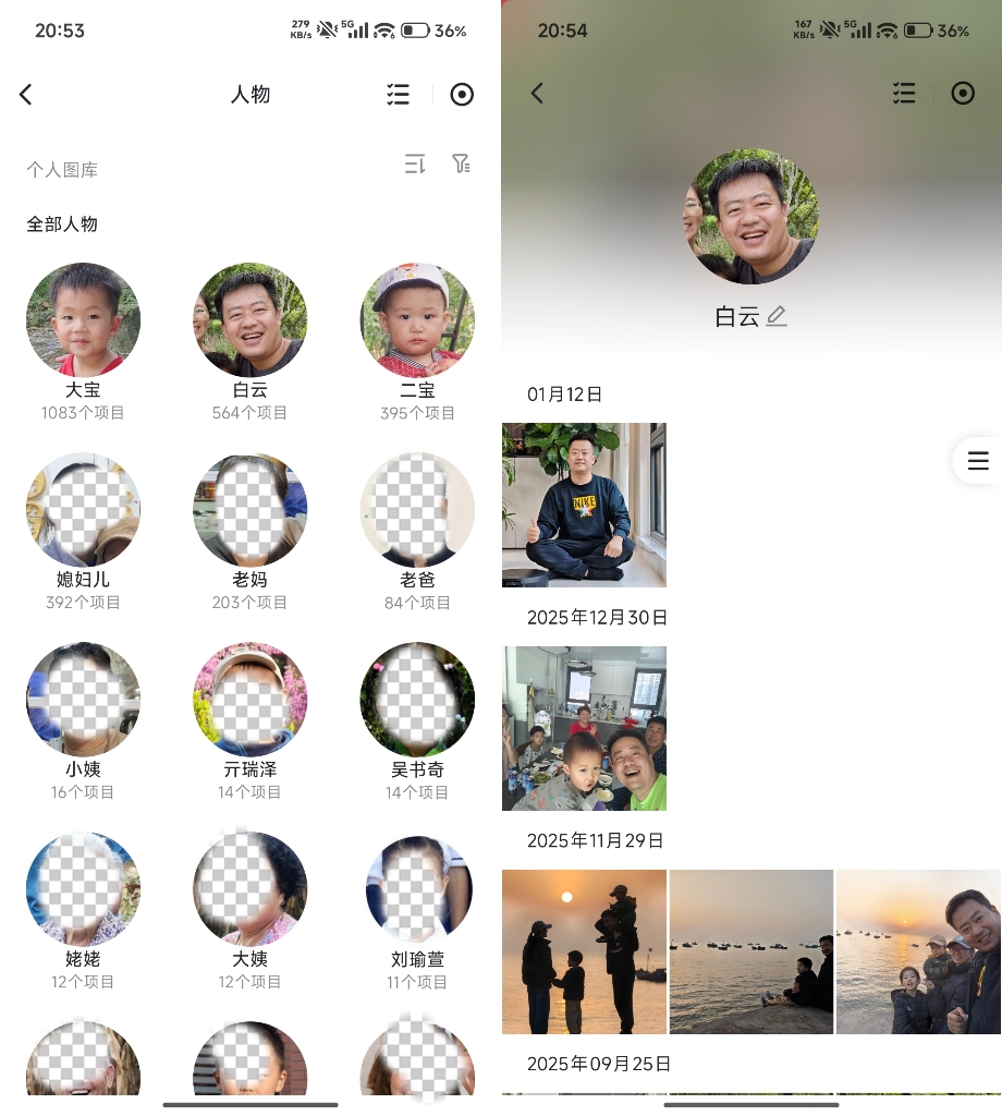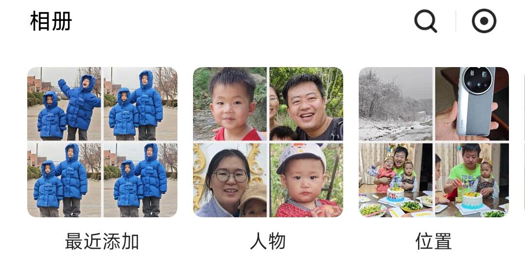 自动识别人脸后会创建个人专属相册,准确率非常高,这样我们想看谁的照片就简单多了。