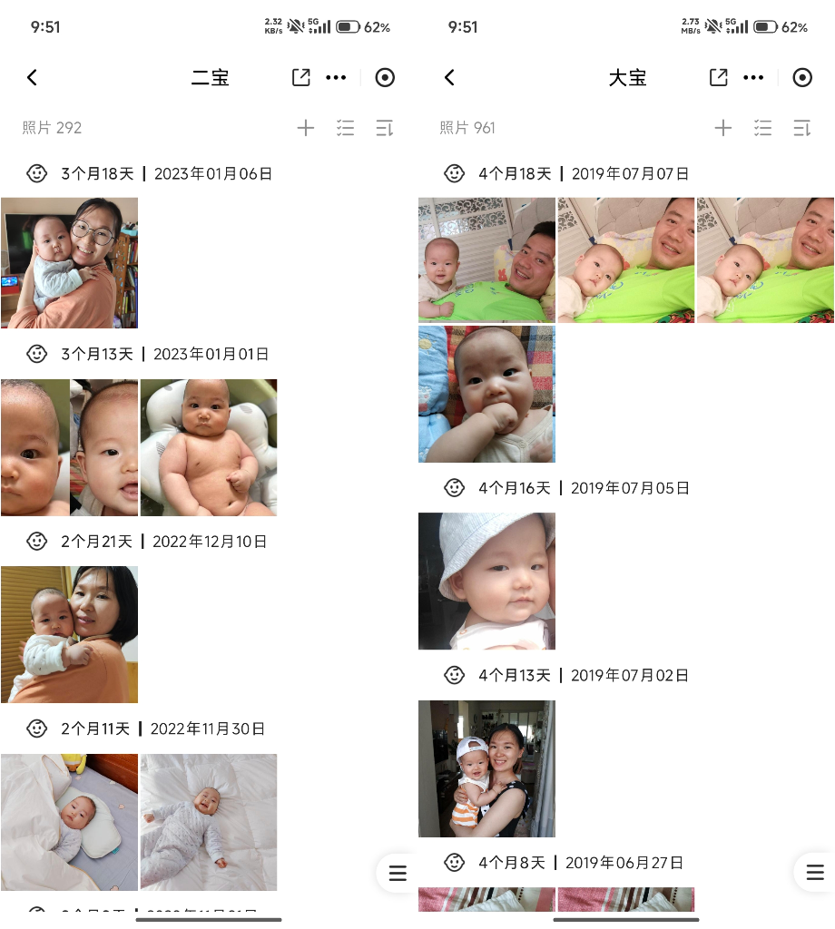 前面说了,手机的相册几乎都是孩子的照片,查找、查看非常费劲。绿联D4300 Plus拥有宝宝专属相册,我们只需要“喂”它一些基础信息,相册就能自动按照孩子年龄的顺序进行照片排列,这样一来查找照片就简单了,看照片时也能实时获取拍照时间,绿联D4300 Plus真的可以陪着孩子长大哟!