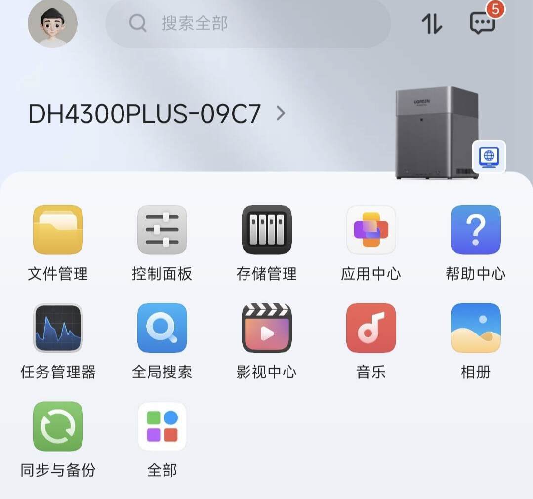 UGOS Pro系统界面设计很现代化,不像有些设备的后台,密密麻麻全是字,找个功能跟大海捞针似的。绿联DH4300 Plus就是主打一个照顾小白,所有的操作逻辑都特别清晰,无论你想干嘛都是一找一个准。