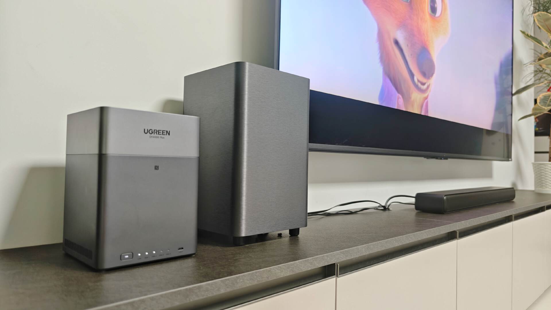 绿联DH4300 Plus可以通过音频直通功能将高清音频信号直接传输至专业音响设备,如家庭影院功放、Soundbar 等设备。可以实现无损音频播放,满足我们对于高品质家庭娱乐的追求,这样一来,视听体验就完美了。