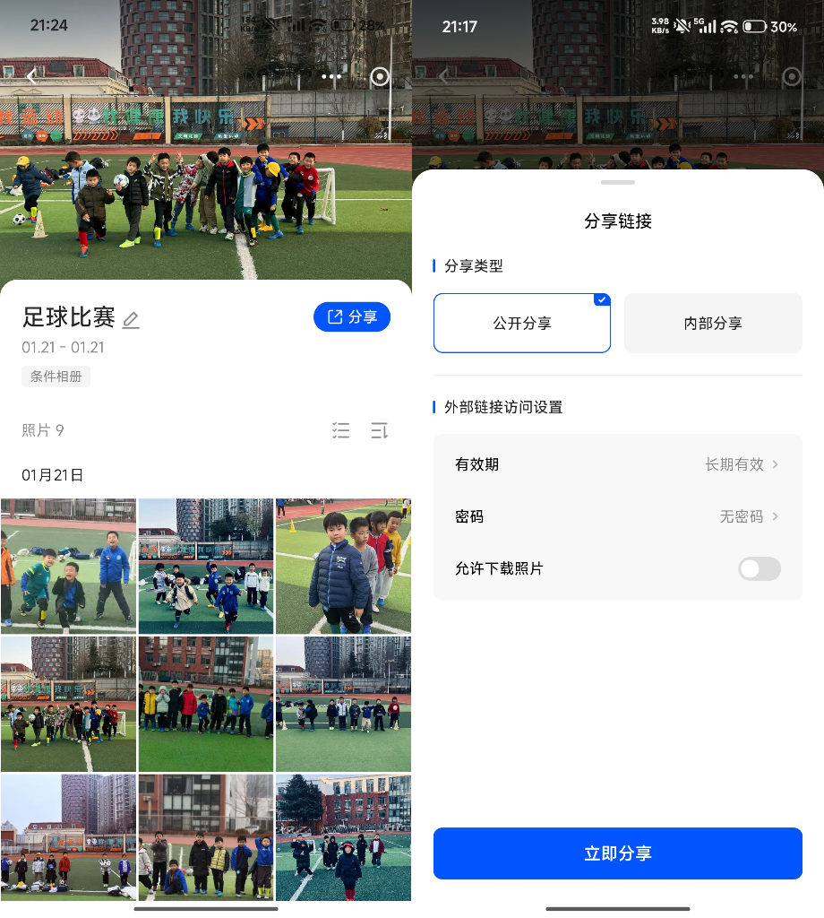 最关键的是,这些相册都是可以有条件分享的,比如孩子的足球队参加比赛,我们可以把抓拍的照片分享到球队群里,非常方便。比如老人想看孩子的照片,我们就可以把宝宝专属相册分享给他们。
