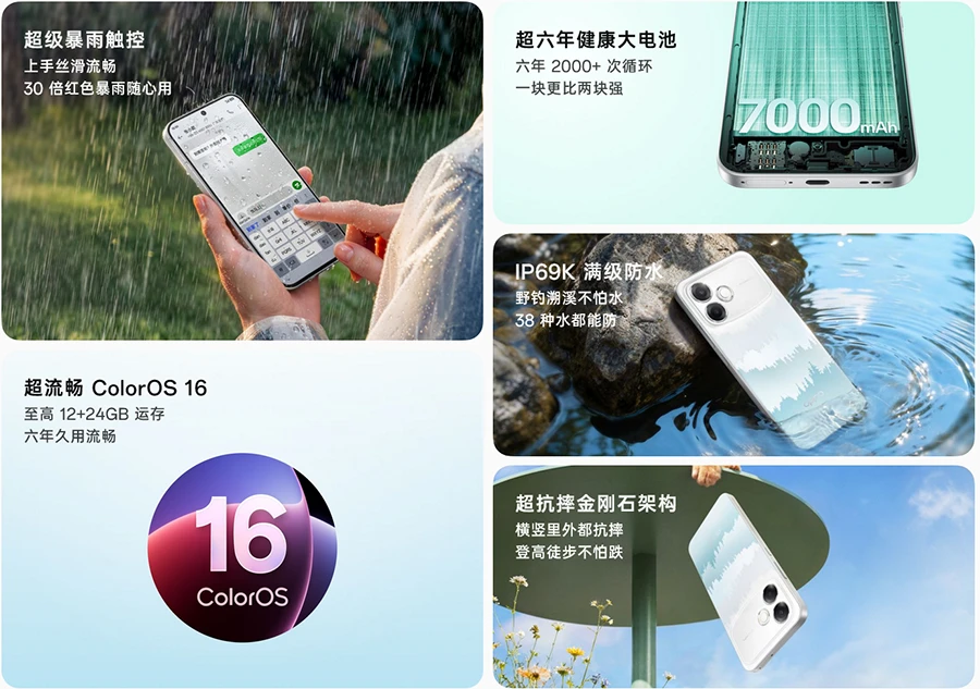 OPPO于今日下午正式发布了A系列新机OPPO A6s Pro。这款新机并未盲目追求极致的影像堆料或顶级的处理器跑分,而是将目光投向了普通用户最真实、最高频的使用场景:在极端天气下的操作可靠性、全天候的续航安全感以及长达数年的流畅体验。