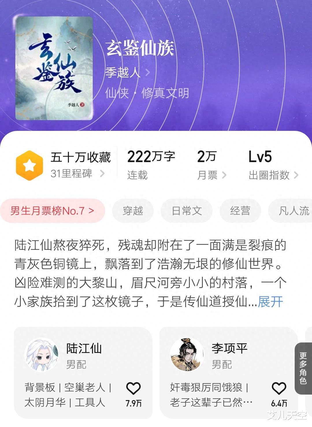 季越人的《玄鉴仙族》在昨天的时候均订成功突破五万,小说成绩又上了一个台阶。二月份的紫府高潮剧情,还是带动了小说成绩的提升速度的,起点月票榜上也是首次杀进了前十。