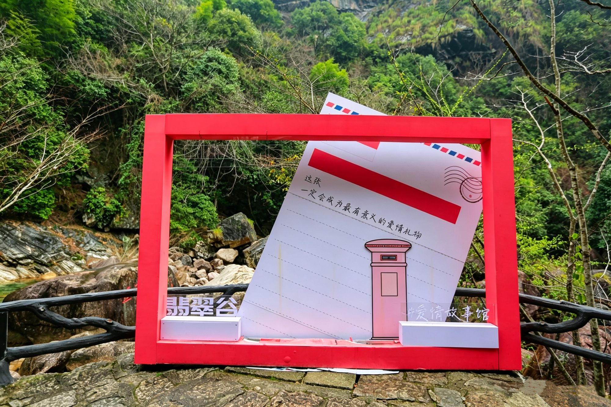 翡翠谷的浪漫元素随处可见,石碑上用不同字体刻满了“爱”字,从篆书到楷书,每一笔都藏着对爱情的美好期许。