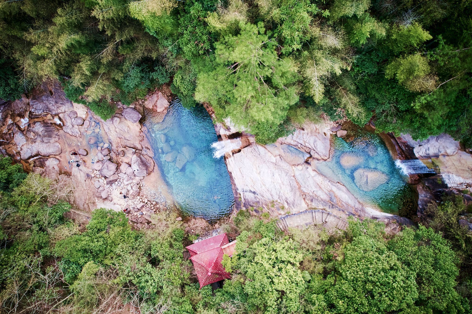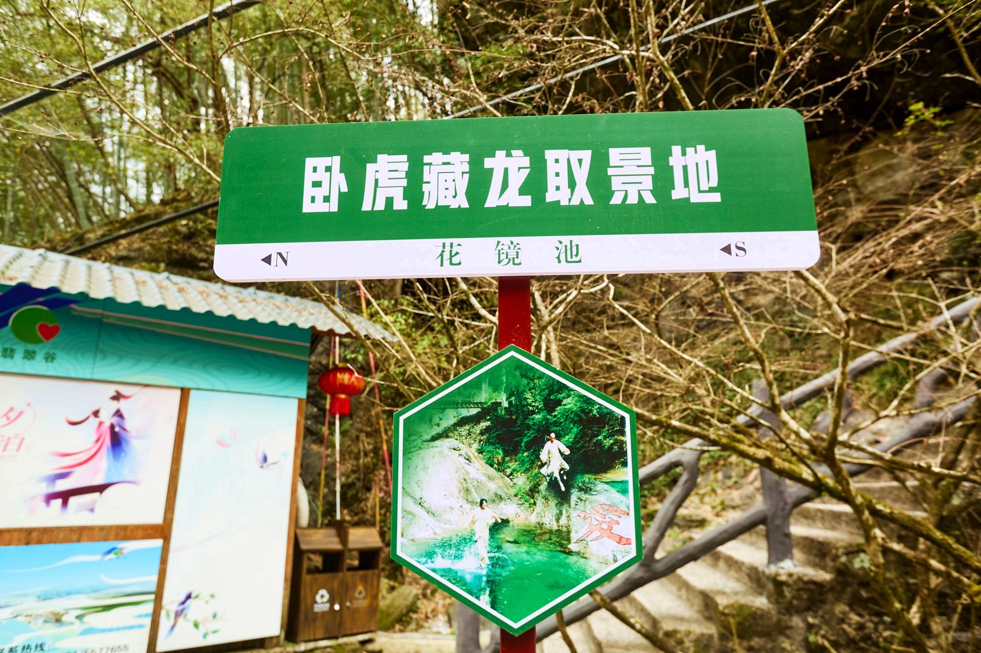 花镜池是电影《卧龙藏虎》里的同款碧潭,电影里章子怡和周润发的经典打斗场面就是在这里拍摄的。春日山林里,风穿过枝叶,仿佛还能听见电影里的衣袂翻飞声,让这片山水也多了几分江湖气。