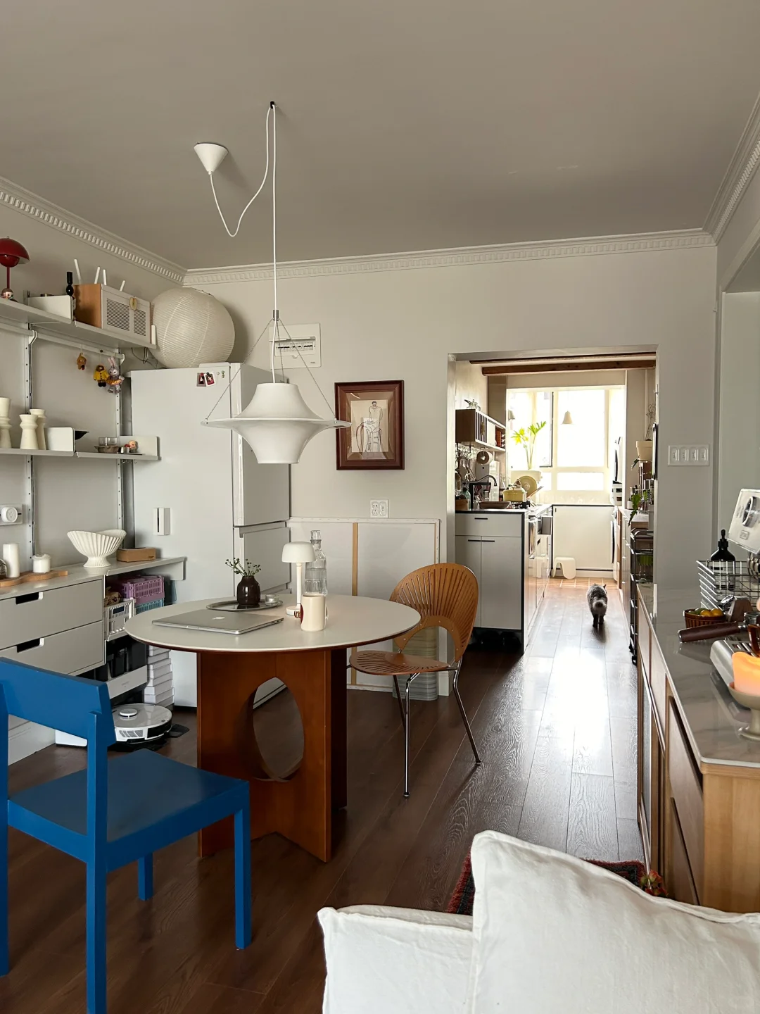 一个长条形的户型有着不够宽裕的餐厅