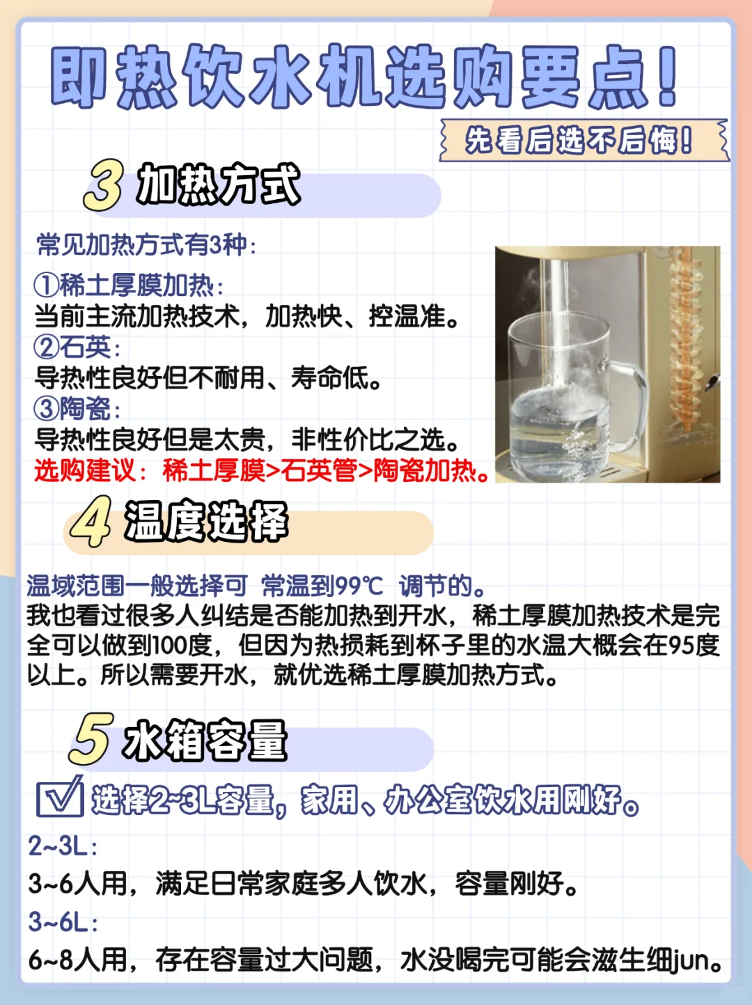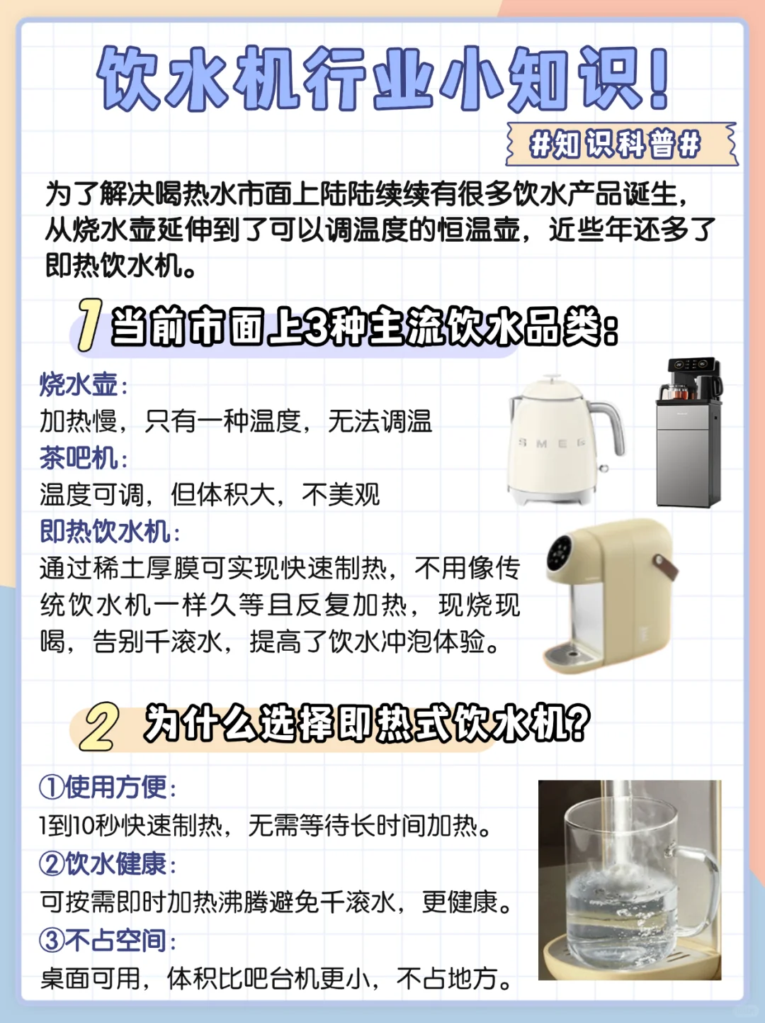 很多人在选择即热饮水机会纠结选哪款合适自己 不同即热饮水机到底有什么区别?即热饮水机怎么选❓ 花3天3夜,查阅官方数据、咨询官方客服和门店。研究了几十款即热饮水机,终于整理出了“即热饮水机推荐表”,告诉你如何选购。