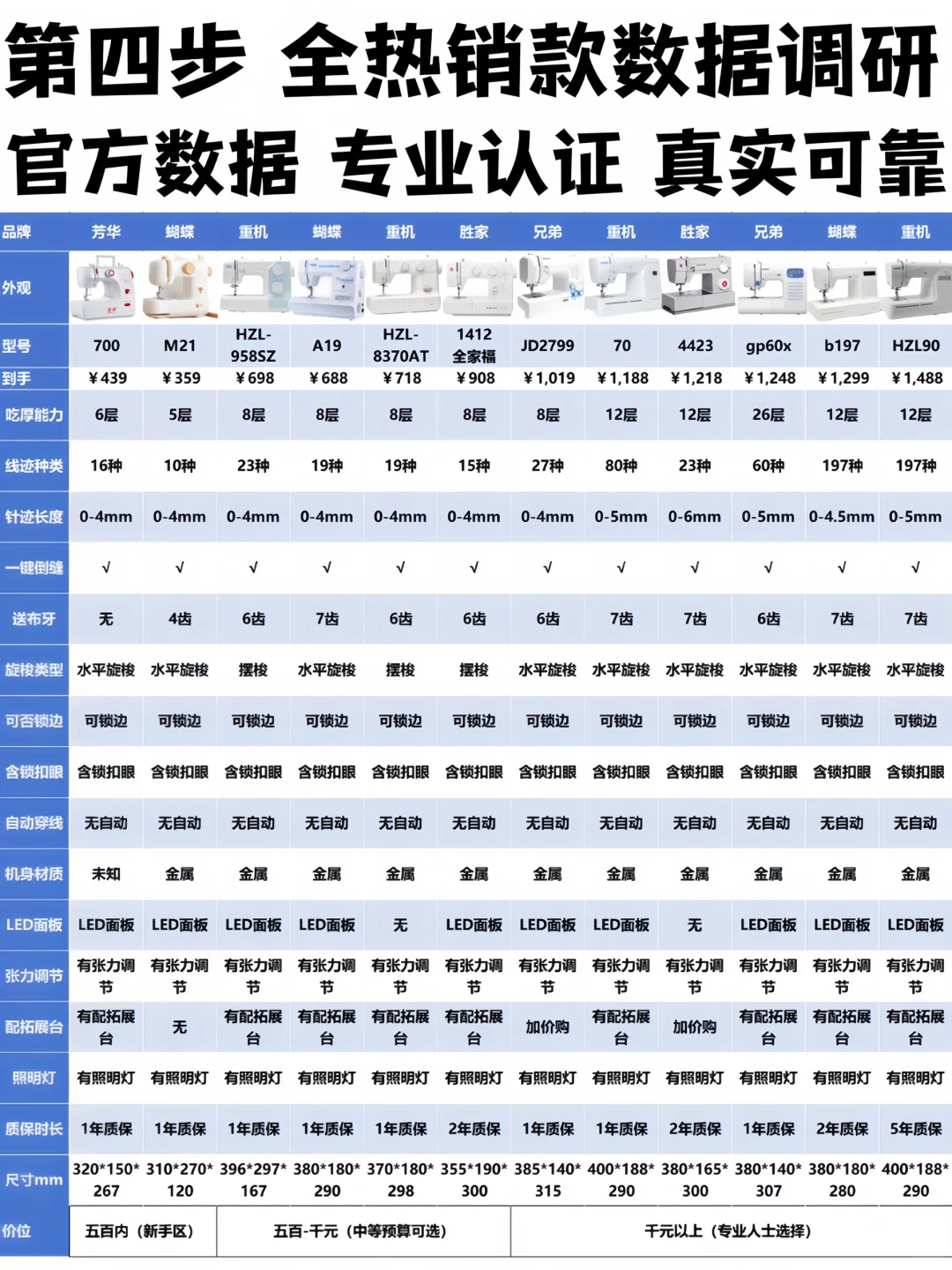 花3天3夜,查阅官方数据、咨询官方客服和门店。研究了几十款缝纫机,终于整理出了“缝纫机推荐表”,告诉你如何选购。