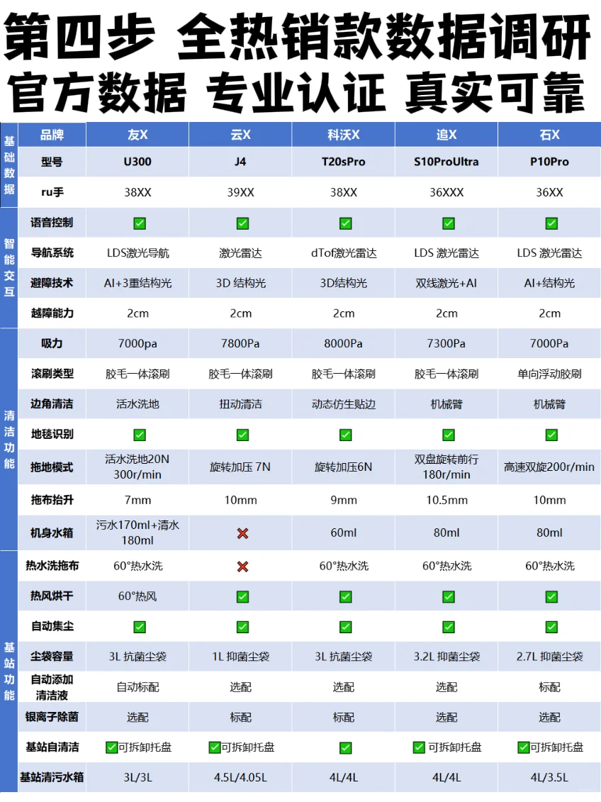 花3天3夜,查阅官方数据、咨询官方客服和门店。研究了几十款扫拖一体机,终于整理出了“扫拖一体机推荐表”,告诉你如何选购。