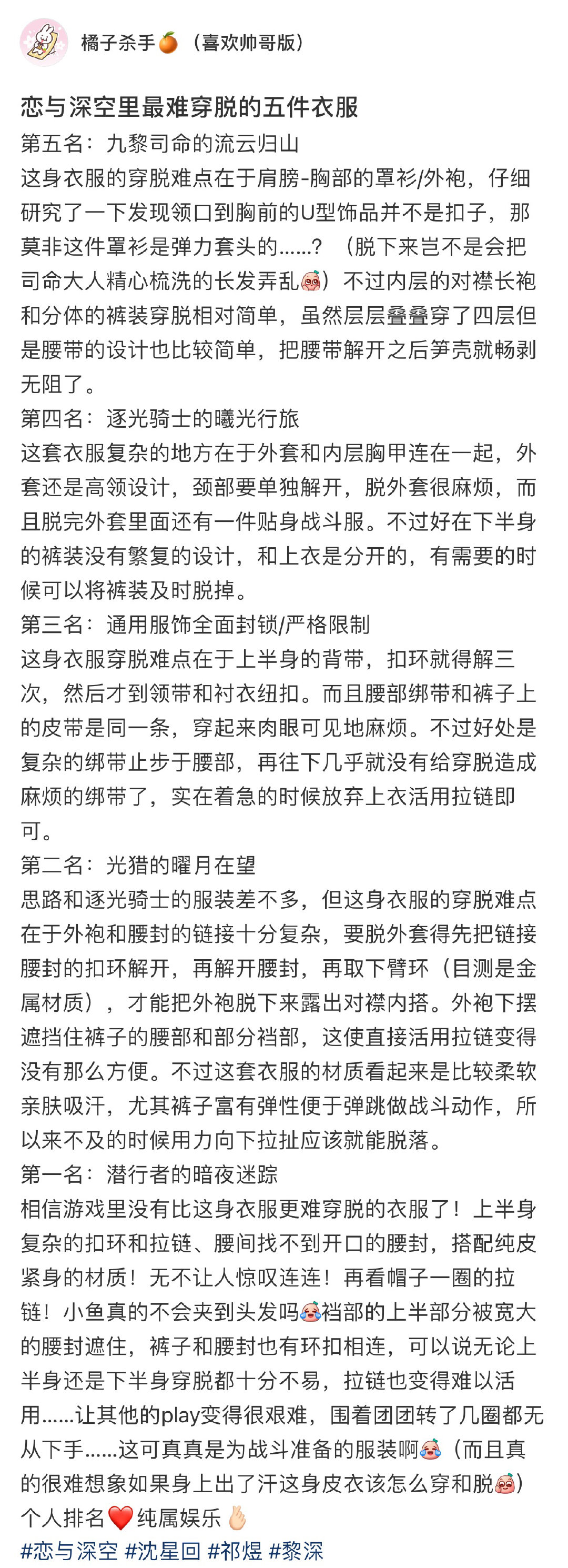 恋与深空里最难穿脱的五件衣服[并不简单]#恋与深空#