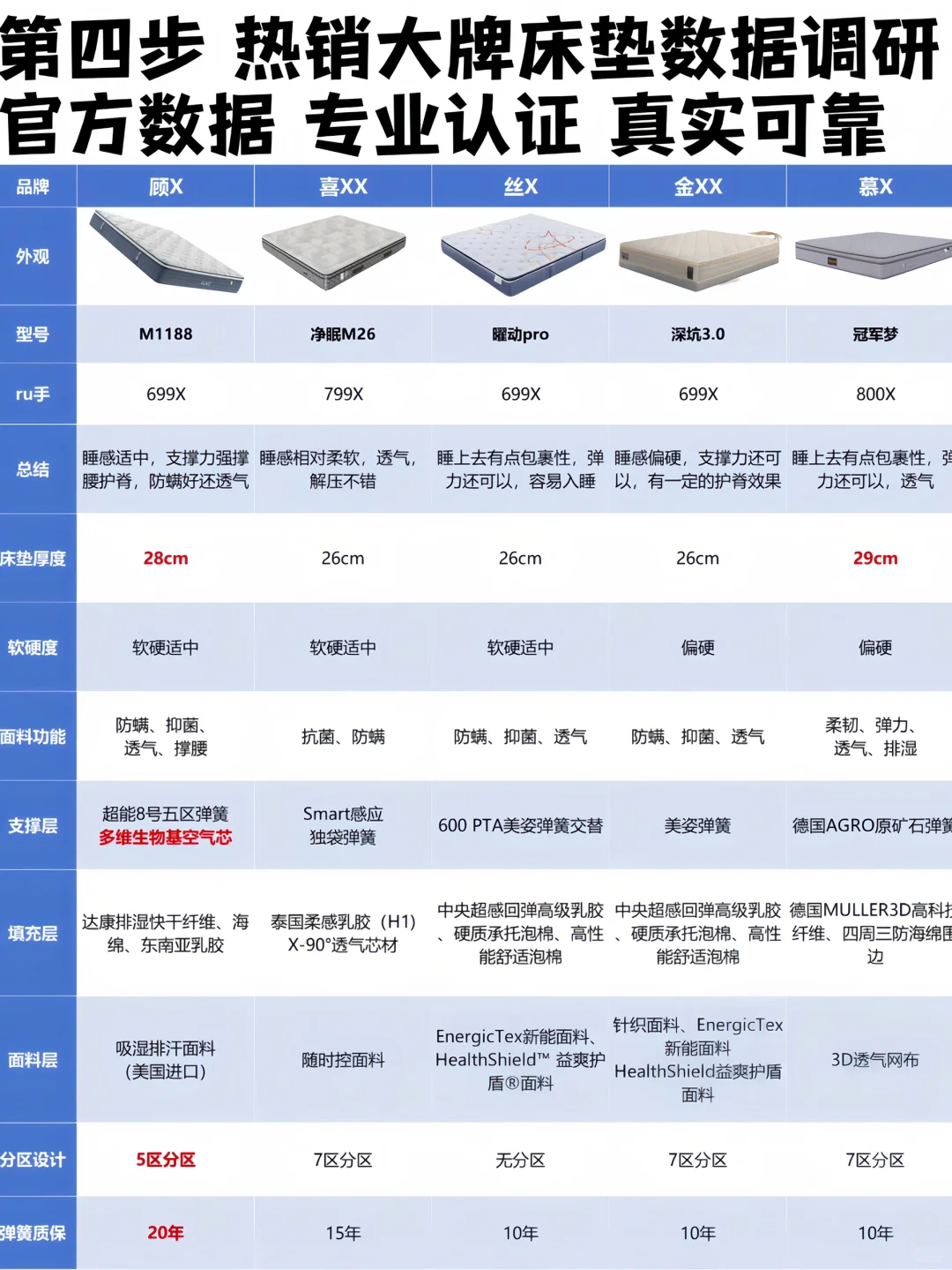 花3天3夜,查阅官方数据、咨询官方客服和门店。研究了几十款床垫,终于整理出了“床垫推荐表”,告诉你如何选购。
