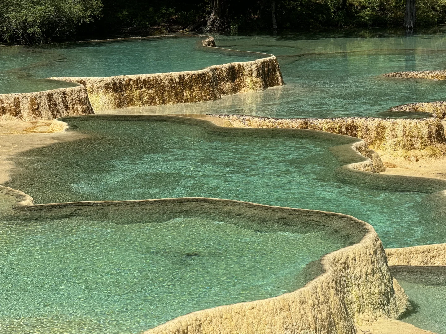 人也不太多 黄龙索道上山 徒步下山大约4km 耗时约3h~~五彩池往下徒步的每个景儿都蛮好看