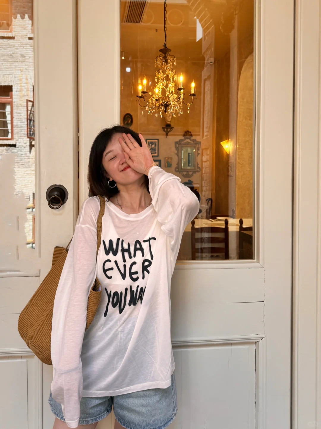 重庆继续热得很稳定。 这样的天能让我出门赴约的统称为“生死之交”。于是一群中年少女“抛夫弃子”跨越半个主城,打卡新晋网红鲁祖庙。来了才发现人均相机,衬得我等手机党灰头土脸。 好在闺蜜也是有两把刷子的,手机拍出来毫不逊色。今天的防晒搭子是薄薄的天丝面膜T,不闷不晒清爽好穿,配上短裤和人字拖,慵懒松弛感一下就拉满了。 突然想挨个打卡重庆各大网红景点,大家想看吗?[害羞R] OOTD:白色天丝面膜T恤(白色较透)+浅色牛仔短裤+厚底人字拖+大草包