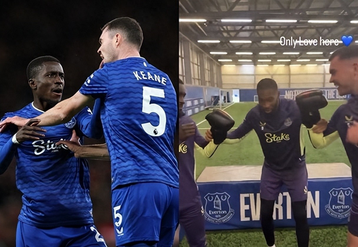 埃弗顿日前的队内训练,故意安排基恩和盖耶戴住拳套,就专门让这俩人痛痛快快地打一场,而这两人就忍不住一边大笑,还一边作势出拳的样子,整个气氛都很欢乐,而视频也标注“这里只有爱”,足证两人已经一笑眠恩仇了。