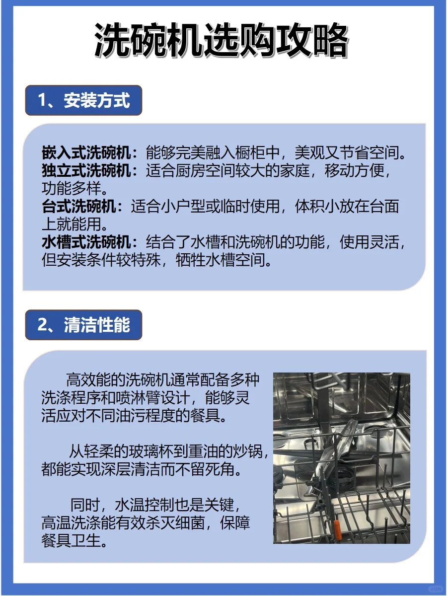 ✨选对洗碗机对于现代家庭而言,是提升生活品质、节省时间与精力的关键一步。在挑选时: