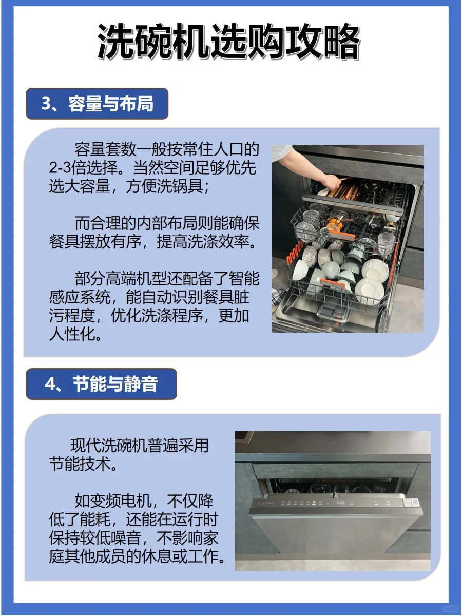4⃣️此外,容量与布局设计也需仔细考量。大容量洗碗机适合大家庭或经常举办聚会的家庭,而合理的内部布局则能确保餐具摆放有序,提高洗涤效率。部分高端机型还配备了智能感应系统,能自动识别餐具脏污程度,优化洗涤程序,更加人性化。
