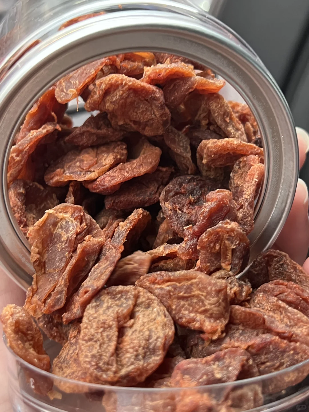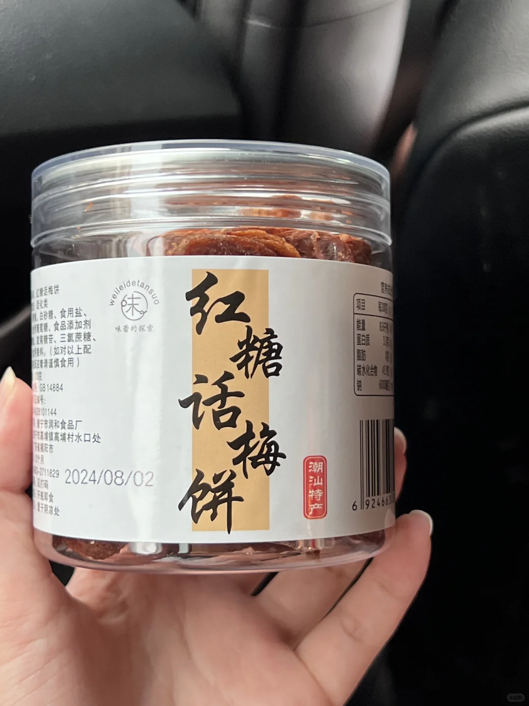 这是吃了不少于5瓶的红糖话梅饼 一打开瓶子就有一股梅子味 红糖熬煮过的糖水浸泡话梅肉晒干 口水直流啊🤤 吃起来嘞,5分酸5分甜 果肉感6分干4分湿,无核(不用吐核) 如果可以我会吃一辈子的❤️ 希望不要停产了