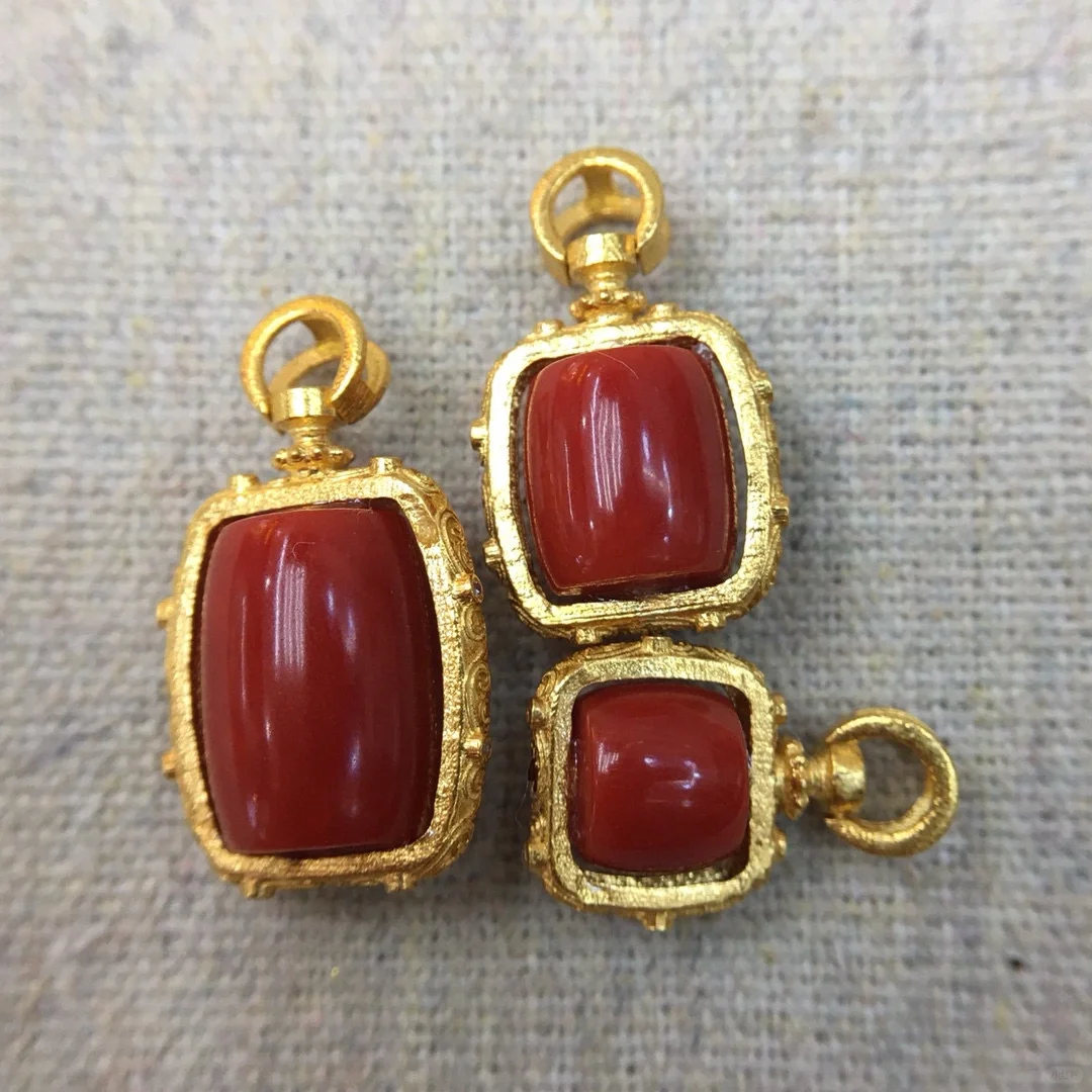 意大利沙丁红珊瑚精工直切桶珠18k金镶嵌