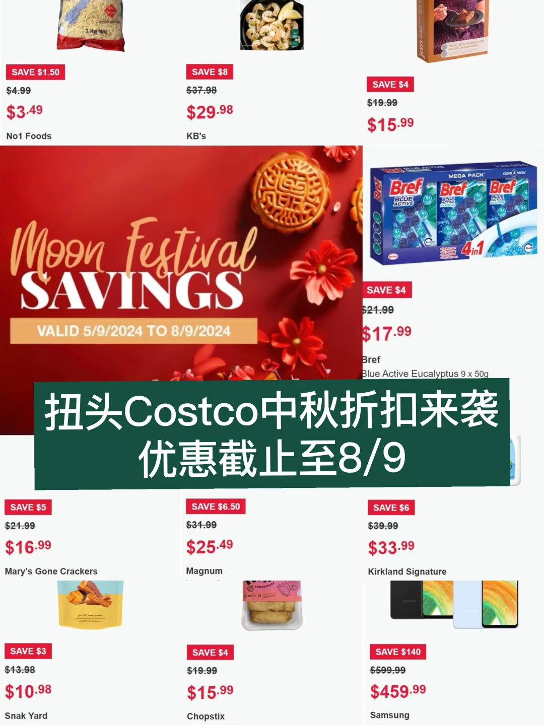 纽村Costco中秋节节优惠开始 从明天,星期四,9月5日开始,一直持续到星期天,9月8日,店内都有各种各样的产品做特价[黄金薯R] 又有借口去逛逛了[暗中观察R] 关注我,下一篇更精彩