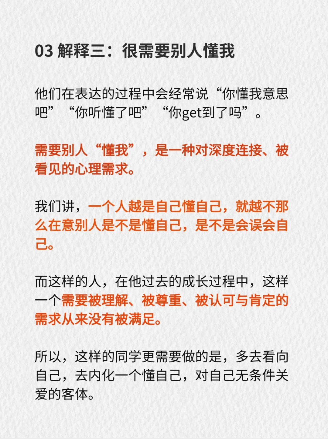 他们在表达的过程中会经常说“你懂我意思吧”“你听懂了吧”“你get到了吗”。