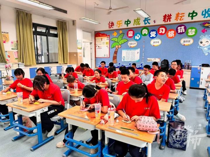 育才大城北中学的一位家长还给小狮子发来了图片:同学们在动手制作给老师的教师节贺卡。