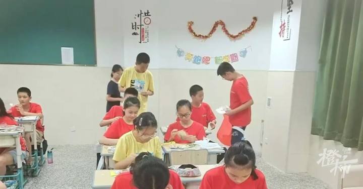 家长朱女士介绍:“周三是学校的无作业日,晚自习时大家一起做了贺卡。今天提前放学,让他们带着贺卡去看小学老师。初三也是这样的。我觉得挺好的。”