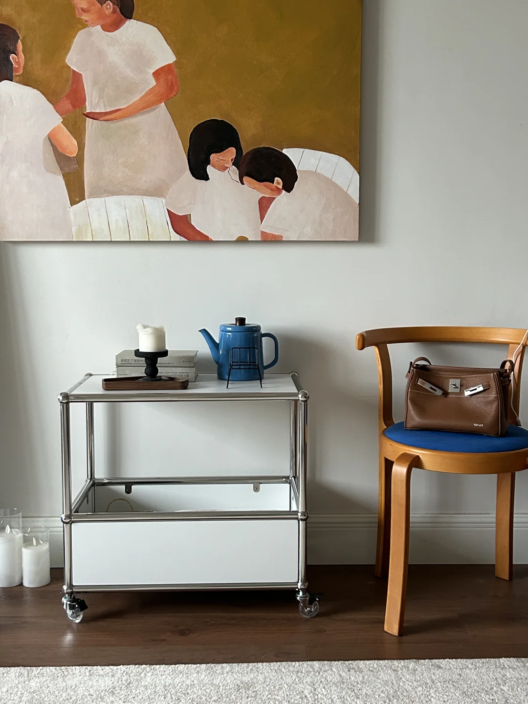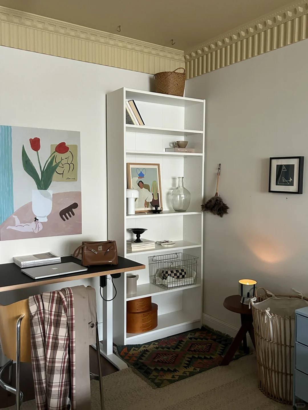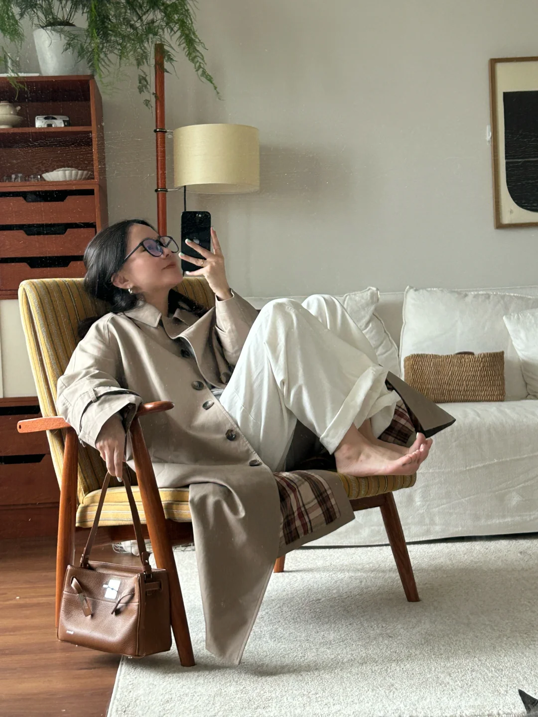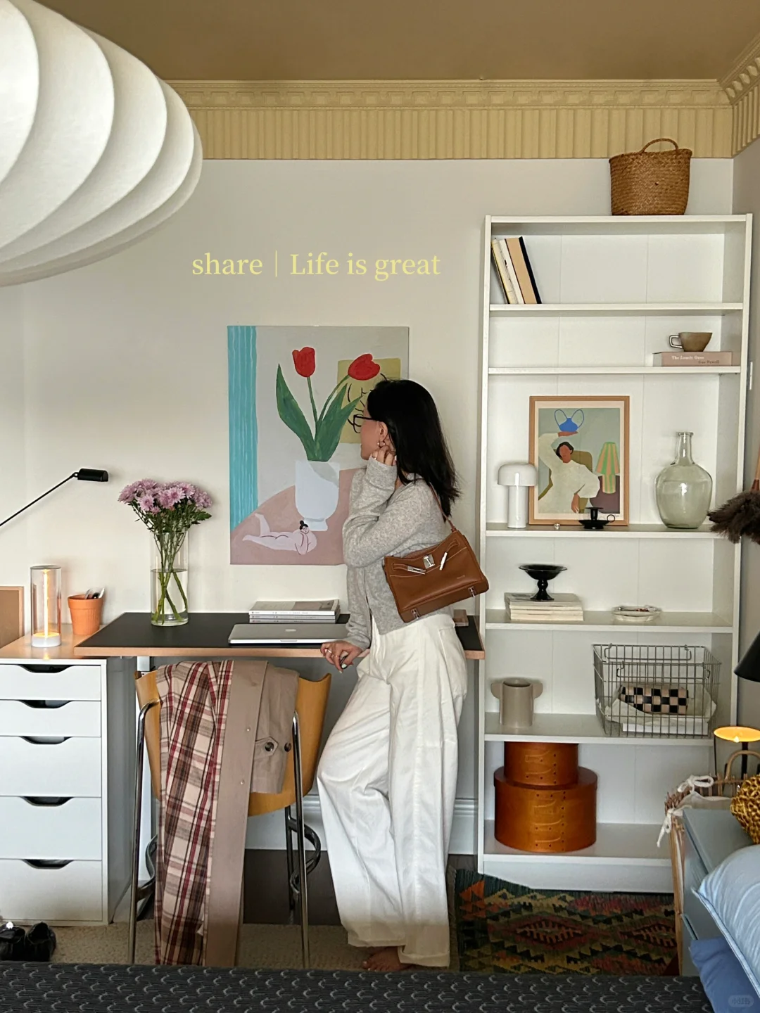 两天的小雨 直接把北京的晚上拉进了秋天 开着窗户需要裹紧薄被 复古迷人的秋冬色系又要穿上身 点缀一点亮色系 就像我家的色调一样 把阳台的办公区搬到了主卧门口 拍摄角度一切又变得不一样 一把复古明亮的单椅 忍不住在客厅拍拍拍 变身穿搭区域 即使是64平老破小 通过挪动和小物件的组合 一样散发多变的生活气息和时尚度 —