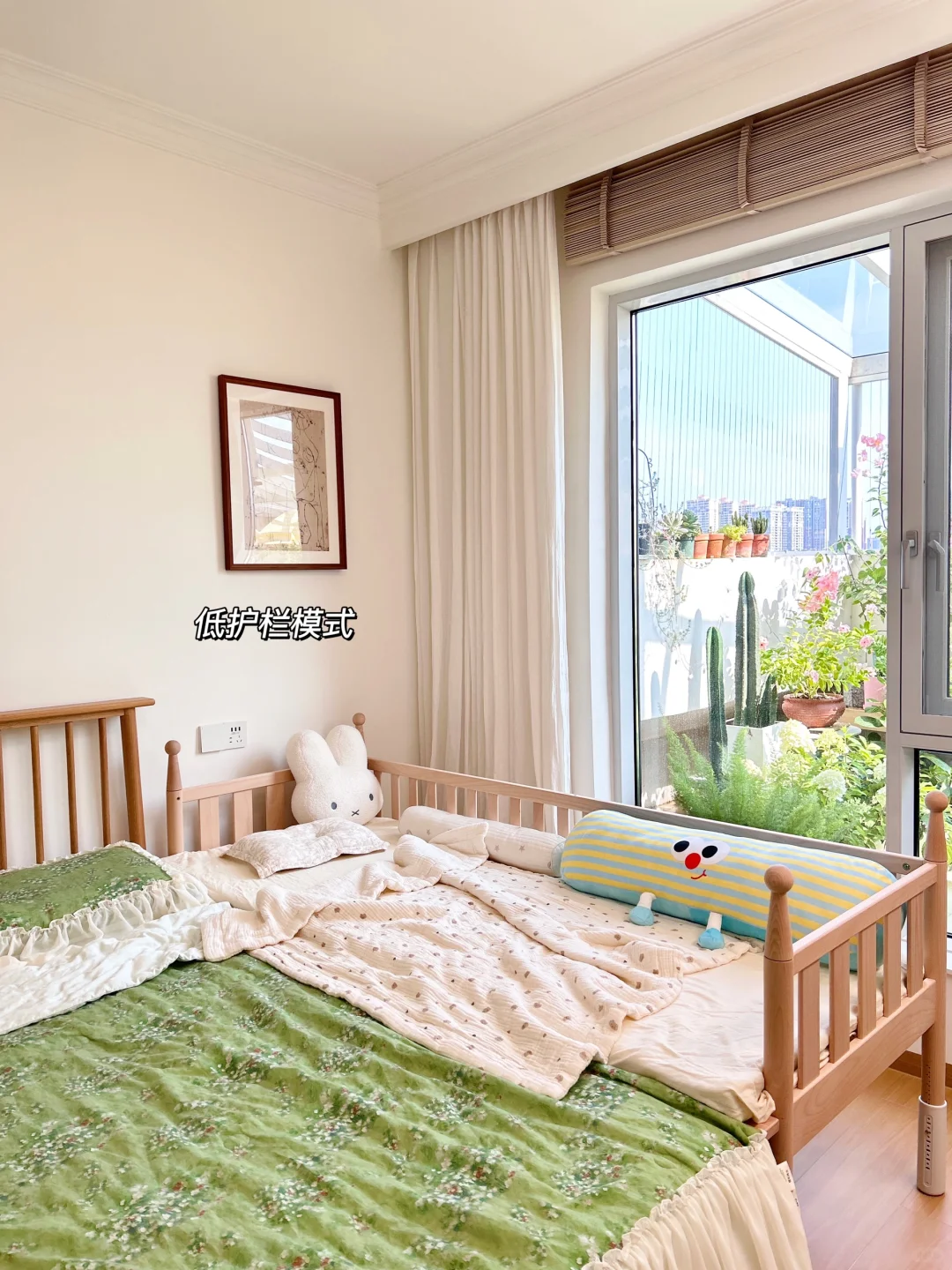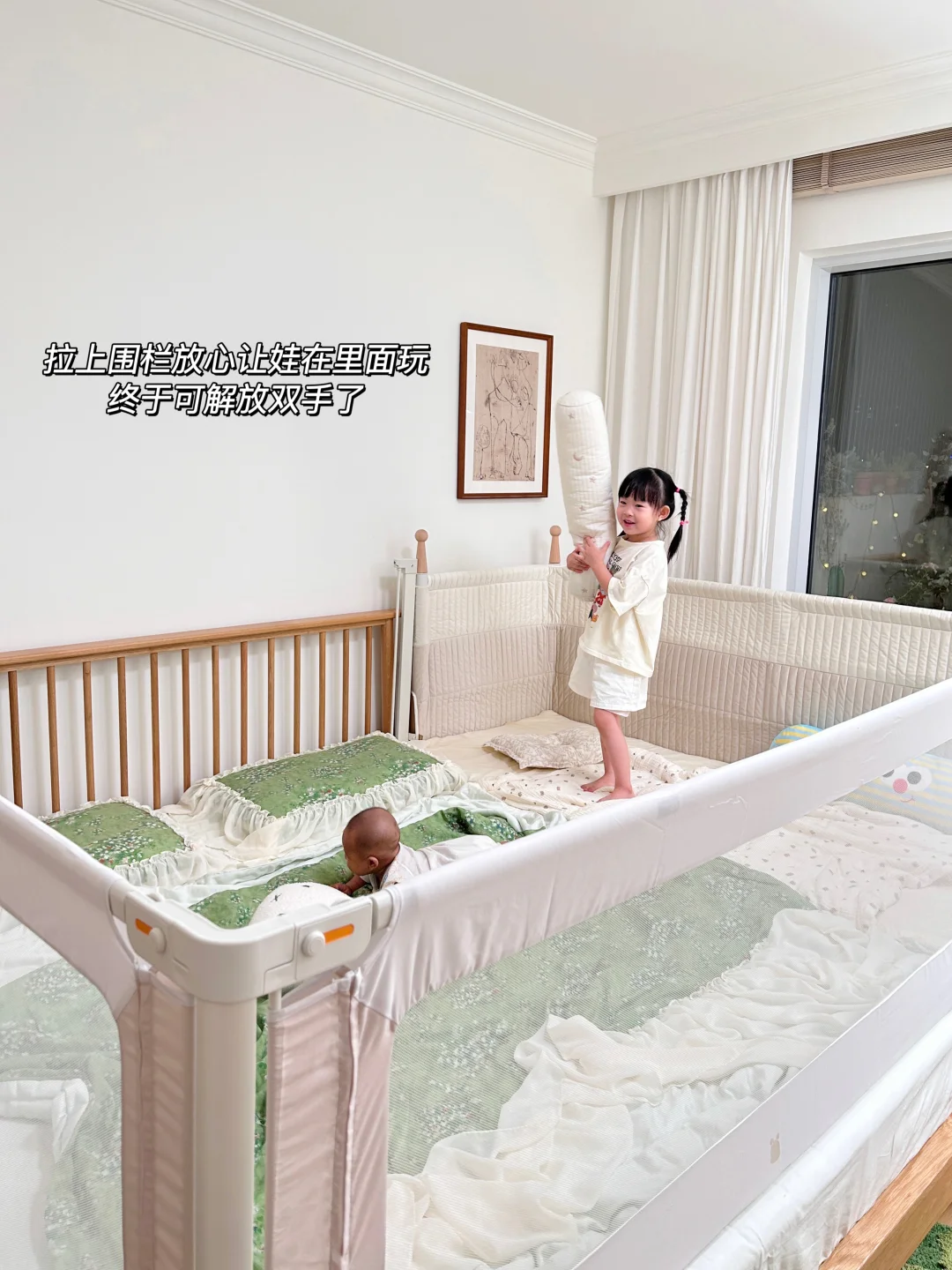 娃会爬之前用低护栏,不挡宝宝视线,爸爸妈妈抱娃、放睡都很方便!还可以当学龄前宝宝的分床神器!