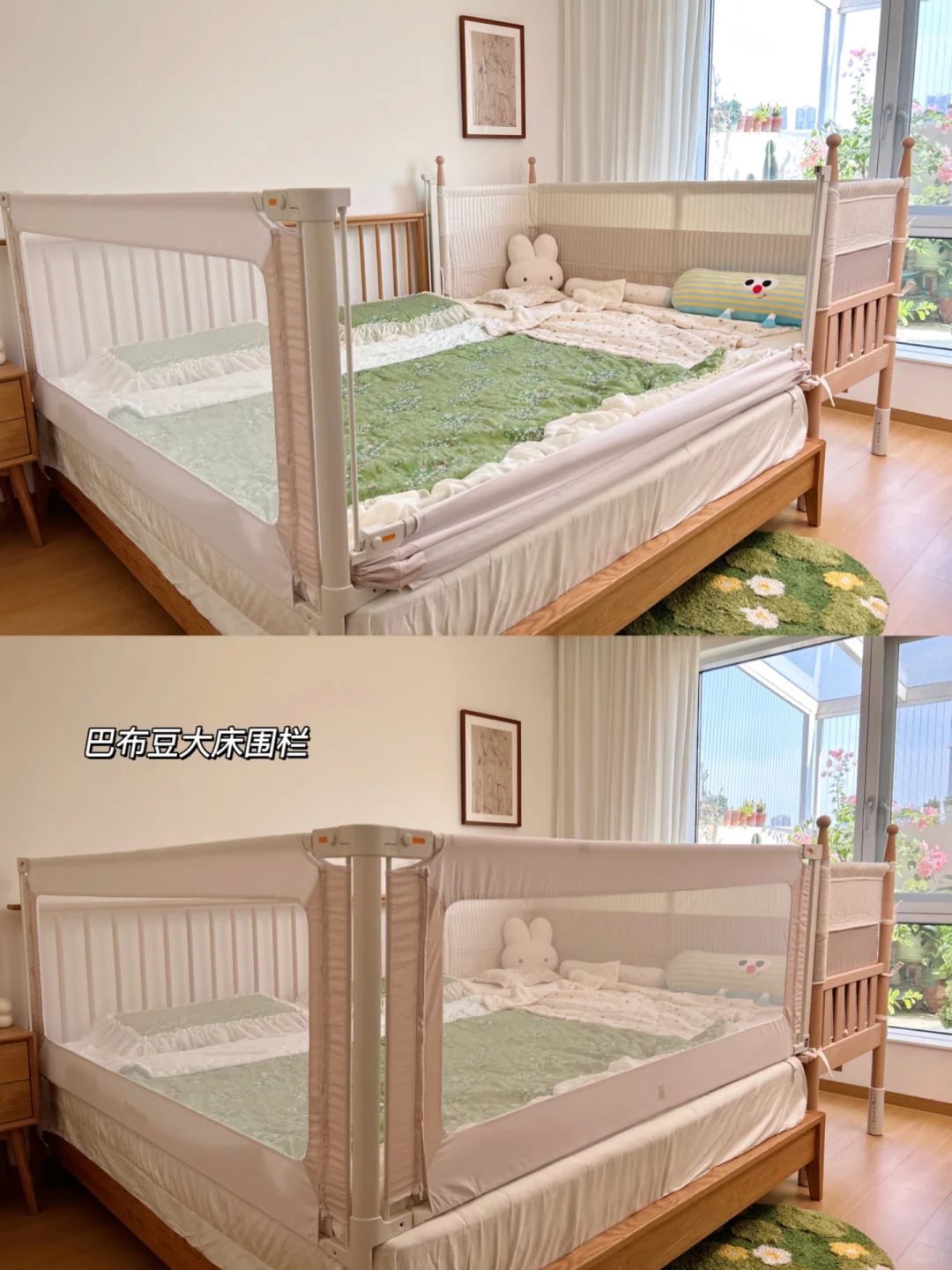 有12档高度调节,可适配各种高度的大床!👍绝的是它自带8.5cm延边板,不管是箱体式还是内嵌式大床,都能无缝拼接!宝宝在床上怎么闹腾也不会卡手卡脚。娃睡觉不老实躺到交界处也不会硌,舒适度直接拉满!
