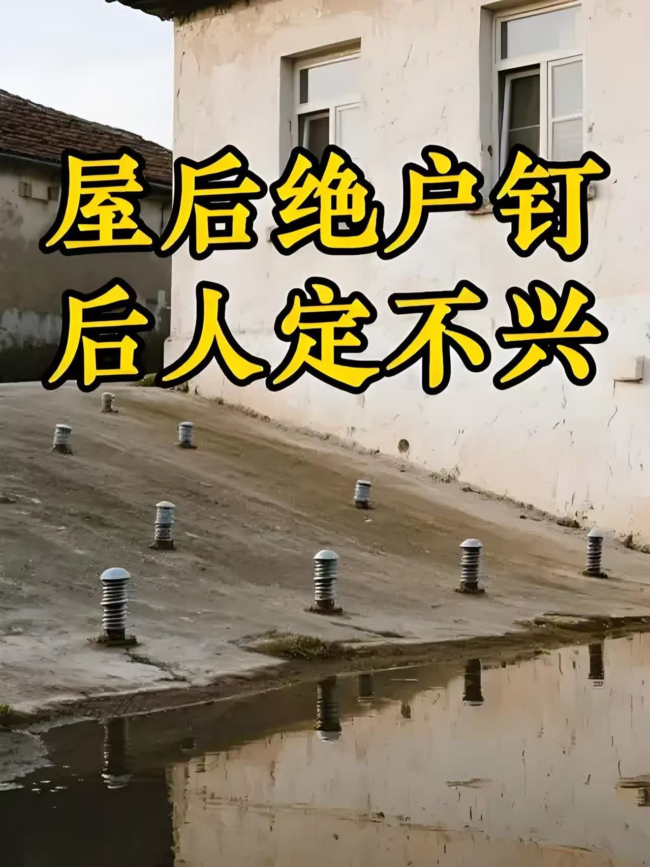 农村地区,虽民风淳朴,但不是法外之地。房屋后面设计有绝户钉,严重影响到了他人的正常出行,以及人身安全。年深日久,邻里矛盾激化,邻里矛盾升级。从而导致这样的家庭被周围邻居所孤立,在农村,孤立无援的家庭往往在日后的生活当中,处处荆棘,前行困难。从而影响到家运。