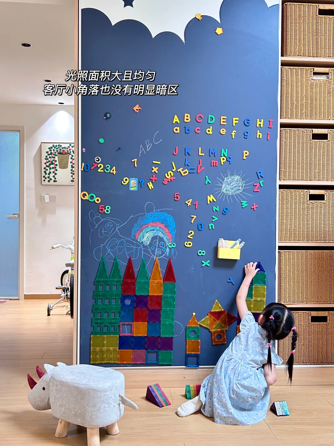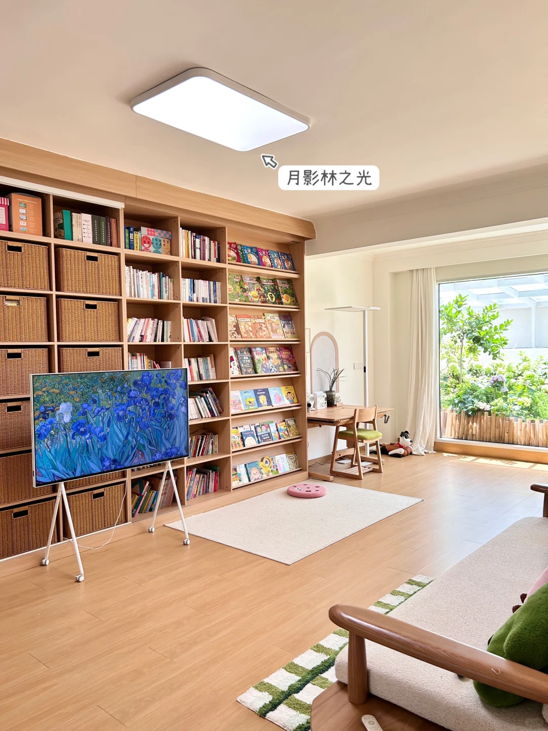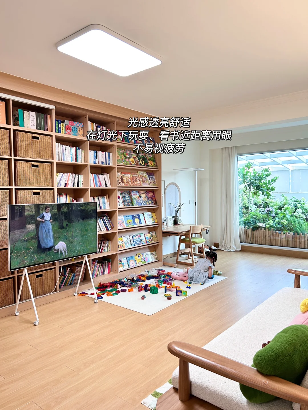 考虑到孩子经常在客厅看电视,还有画画、玩玩具、看绘本等近距离用眼,所以客厅的吸顶灯我就直接选择👉月影林之光护眼吸顶灯!