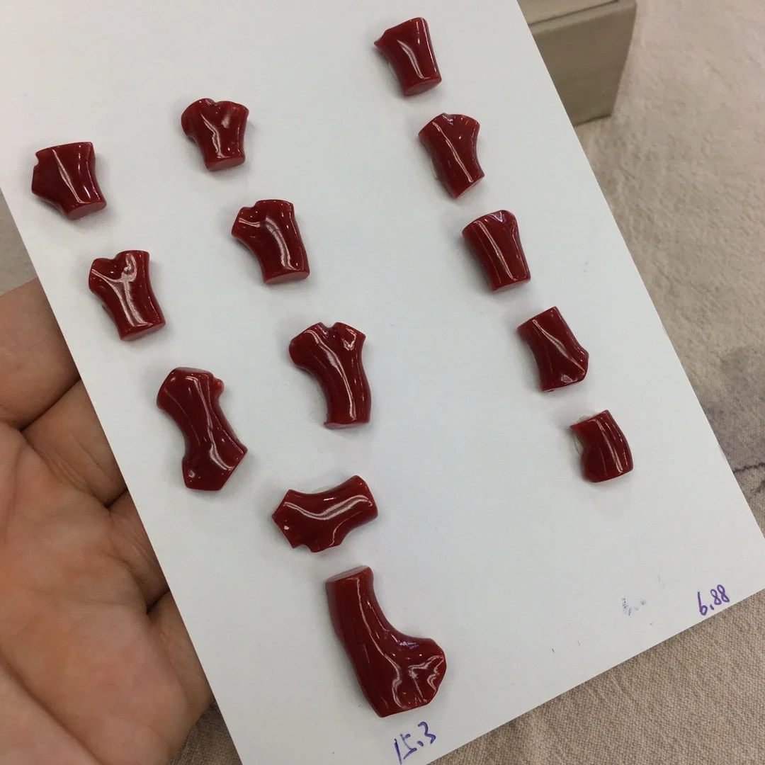 记录吧就现在 阿卡珊瑚精品套装自然形戒面 颜色牛血 品相完美 尺寸11.8~25.3mm 重22.18克