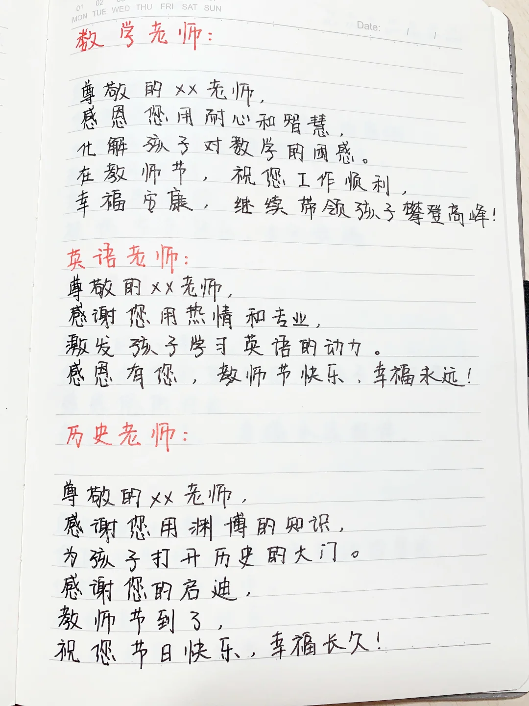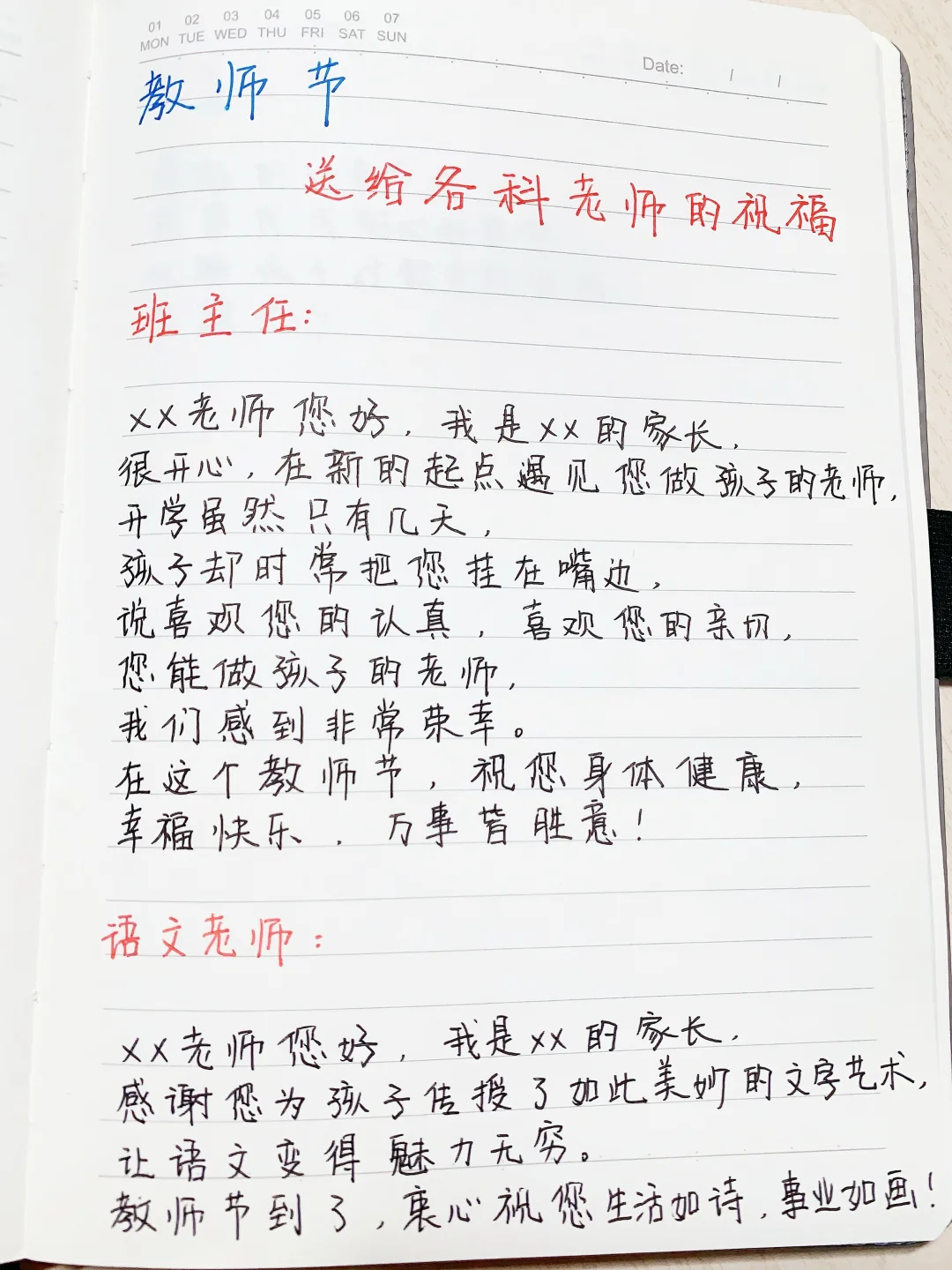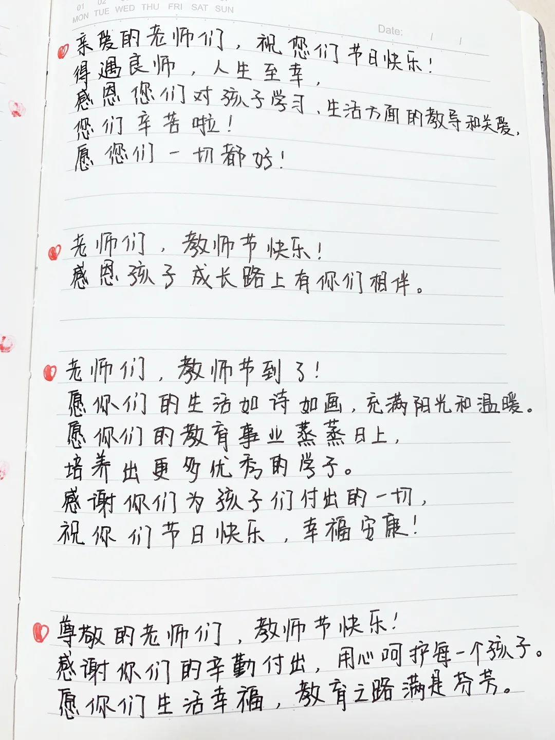 尊敬的老师们,教师节快乐!你们用爱心与耐心,为孩子们开启知识大门。你们的辛勤付出,我们家长看在眼里,感激在心里。愿你们生活如诗,事业辉煌,万事顺意